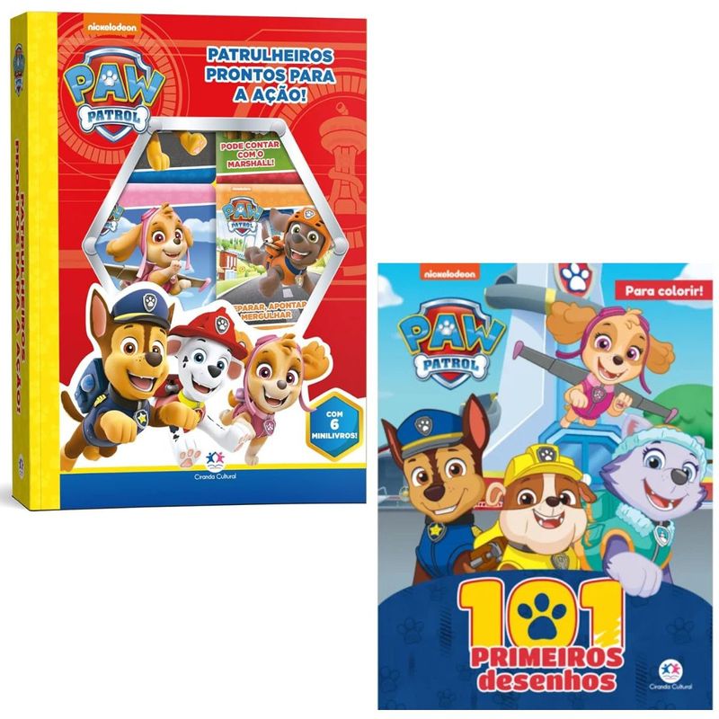 PATRULHA CANINA - 101 PRIMEIROS DESENHOS - CIRANDA CULTURAL A diversão vai começar! Escolha as suas cores favoritas e aprenda novas palavras, enquanto colore o seu primeiro livro de colorir com 101 desenhos da Patrulha Canina.Editora: Ciranda CulturalEdição: 1, 2021Autor: Ciranda Cultural Idioma: PortuguêsPáginas: 96Dimensões: L 20.10 x A 28.60 x E 0.40ISBN: 9786555006711Coleção: Meus primeiros desenhosLinha Editorial: Ciranda Cultural - LicençasFaixa Etária: 0-3 anosAssuntos (tags): Desenhos, Colorir, Diversão, Patrulha CaninaBISAC: Não Ficção Infantil / Não Ficção Infantil / Mídia Tie-inLinha de Produto: 101 desenhosEncadernação: BrochuraAcabamento: Não se aplicaMaterial: Papel PATRULHA CANINA PATRULHEIROS PRONTOS PARA A AÇÃO - CIRANDA CUTURAL LIVRO BOX COM 6 MINI LIVROS - PATRULHA CANINA Descubra tudo sobre os filhotes da Patrulha Canina com estes incríveis minilivros. Chase, Marshall, Rocky, Rubble, Skye, Zuma e todos os outros habitantes da Baía da Aventura esperam por você para embarcar nesta missão!Editora: Ciranda CulturalEdição: 1, 2021Autor: Karina BarbosaIdioma: PortuguêsPáginas: 60Dimensões: L 17.30 x A 23.10 x E 3.59ISBN: 9788538096931Coleção: Box com janela com 6Linha Editorial: Ciranda Cultural - LicençasFaixa Etária: 0-3 anosAssuntos (tags): Patrulha Canina, Desenho animado, Trabalho em equipe, Diversão, AprendizadoBISAC: Literatura Infantil / Mídia Tie-inLinha de Produto: Box mini 6Encadernação: Capa duraAcabamento: Faca especialMaterial: Cartonado