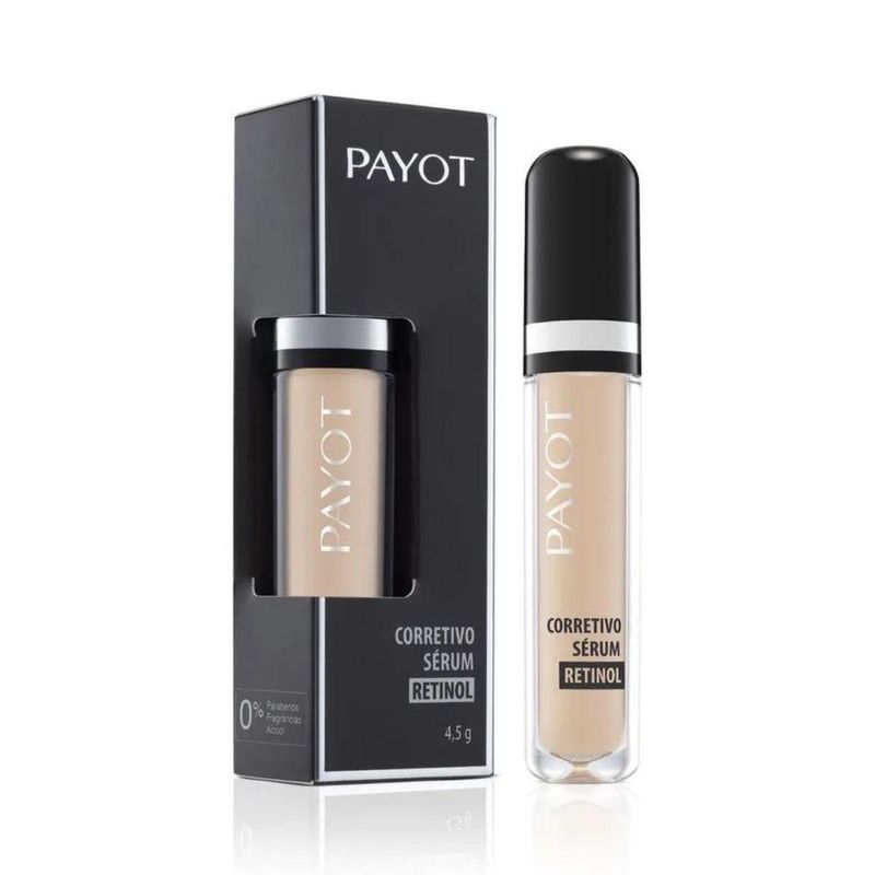 Payot Corretivo Sérum Retinol 4,5g Cor:10PAYOTA Payot, hoje uma empresa 100% nacional do setor de cosméticos, iniciou suas atividades no Brasil em 1953. Em mais de meio século de atuação no mercado de beleza, a empresa se destaca com uma completa linha de produtos para tratamento facial, corporal, capilar e maquiagem, somando mais de 120 itens.SOBRE O PRODUTOO Corretivo Sérum Retinol é maquiagem e tratamento cosmético em um só produto. Com ativos como Retinol Vegetal*, Niacinamida, Pantenol e Biocolágeno*, que ajudam a minimizar a aparência de rugas, linhas de expressão.Disfarça imperfeições, olheiras, sinais de cansaço e uniformiza o tom da pele.Possui cobertura média, com acabamento de efeito natural, rápida absorção e sem craquelar.Para todos os tipos de pele.*Retinol Vegetal ? extrato obtido da planta Bidens pilosa. Atua de forma semelhante aos retinóis sintéticos.*Biocolágeno ? ativo vegetal obtido da goma da Acacia senegal. Hidratante, forma um filme de sensorial aveludado.VeganoNão testado em animaisLivre de parabenos, fragrância e álcool.IngredientesCiclometicona, Dimeticona, Estearato de Magnésio, Crospolímero de Dimeticona, Lauril Peg-10 Tris (Trimetilsiloxi) Sililetil Dimeticona, Butilenoglicol, Amidoctenilsuccinato de Alumínio, Metacrilato de Polimetila, Agua, Glicerol, Cloreto de Sódio, Edetato Dissódico, Fenoxietanol, Caprililglicol, Dexpantenol, Nicotinamida, Extrato da Goma de Acácia, Extrato da Flor de Rosa Mosqueta, Extrato de Picão Preto, Oleo de Palma de Dendê, Óleo da Semente de Algodão, Oleo da Semente de Linhaça, Tocoferol, Dimiristato de Alumínio, Trietoxicaprililsilano, Estearoil Glutamato Dissódico. Pode conter os corantes: Dióxido de Titanio, Oxido de reiro Vermelho, Oxido de Ferro Preto, Oxido de Ferro Amarelo, Azul 77007, Verdo 77298:SOBRE A LOJA-Desde 2018, nossa missão é realçar a beleza das mulheres da região com produtos 100% originais e garantia de procedência. Oferecemos importados com selo de qualidade da ADIPEC e acreditamos que cuidar da autoestima é um investimento. Realizamos trocas em até 7 dias, desde que o produto esteja lacrado. Seja bem-vinda ao nosso universo da beleza!PAYOTA Payot, hoje uma empresa 100% nacional do setor de cosméticos, iniciou suas atividades no Brasil em 1953. Em mais de meio século de atuação no mercado de beleza, a empresa se destaca com uma completa linha de produtos para tratamento facial, corporal, capilar e maquiagem, somando mais de 120 itens.SOBRE O PRODUTOO Corretivo Sérum Retinol é maquiagem e tratamento cosmético em um só produto. Com ativos como Retinol Vegetal*, Niacinamida, Pantenol e Biocolágeno*, que ajudam a minimizar a aparência de rugas, linhas de expressão.Disfarça imperfeições, olheiras, sinais de cansaço e uniformiza o tom da pele.Possui cobertura média, com acabamento de efeito natural, rápida absorção e sem craquelar.Para todos os tipos de pele.*Retinol Vegetal ? extrato obtido da planta Bidens pilosa. Atua de forma semelhante aos retinóis sintéticos.*Biocolágeno ? ativo vegetal obtido da goma da Acacia senegal. Hidratante, forma um filme de sensorial aveludado.VeganoNão testado em animaisLivre de parabenos, fragrância e álcool.IngredientesCiclometicona, Dimeticona, Estearato de Magnésio, Crospolímero de Dimeticona, Lauril Peg-10 Tris (Trimetilsiloxi) Sililetil Dimeticona, Butilenoglicol, Amidoctenilsuccinato de Alumínio, Metacrilato de Polimetila, Agua, Glicerol, Cloreto de Sódio, Edetato Dissódico, Fenoxietanol, Caprililglicol, Dexpantenol, Nicotinamida, Extrato da Goma de Acácia, Extrato da Flor de Rosa Mosqueta, Extrato de Picão Preto, Oleo de Palma de Dendê, Óleo da Semente de Algodão, Oleo da Semente de Linhaça, Tocoferol, Dimiristato de Alumínio, Trietoxicaprililsilano, Estearoil Glutamato Dissódico. Pode conter os corantes: Dióxido de Titanio, Oxido de reiro Vermelho, Oxido de Ferro Preto, Oxido de Ferro Amarelo, Azul 77007, Verdo 77298:SOBRE A LOJA-Desde 2018, nossa missão é realçar a beleza das mulheres da região com produtos 100% originais e garantia de procedência. Oferecemos importados com selo de qualidade da ADIPEC e acreditamos que cuidar da autoestima é um investimento. Realizamos trocas em até 7 dias, desde que o produto esteja lacrado. Seja bem-vinda ao nosso universo da beleza!