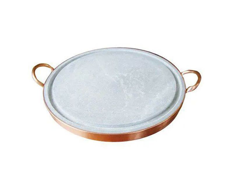 Pedra para Carnes Pedra Sabão com Alça de Cobre 29cm A pedra para carnes em pedra sabão com 29cm de diâmetro é antiaderente e retém o calor por muito mais tempo, ideal para o preparo de deliciosos tipos de carnes. É um dos mais antigos utensílios de cozinha da história da culinária e tem a vantagem de durarem por muitos e muitos anos. Não possuem cheiro, não alteram o sabor dos alimentos e os mantêm quentes por longo tempo. Charme e modernidade na sua cozinha ou restaurante! Encontre outros tamanhos e produtos similares em nossos anúncios. Produto de excelente qualidade Atenção Para as Dicas: Antes de estreá-la no fogão, unte-a com óleo por dentro e por fora, encha-a de água e leve ao forno médio por 2 horas. Com isso estará apta para liberar quantidades expressivas de elementos nutricionalmente importantes como cálcio, magnésio, ferro e manganês. Só lave a peça de pedra sabão com água e sabão. Nada de produtos abrasivos nem esponja de aço Nos primeiros dias de uso, evite choque térmico forte, não aqueça a peça a seco para depois despejar líquidos frios. Isso pode danificar definitivamente a peça. Especificações Técnicas: Diâmetro interno: 29cm Diâmetro externo: 30.5cm Altura: 2,0cm Alça de cobre Peça Antiaderente Código: Pedra para carne SJ-M Itens Inclusos: 01 Pedra para Carnes Pedra Sabão com Alça de Cobre 29cm Produto plataforma Plast.