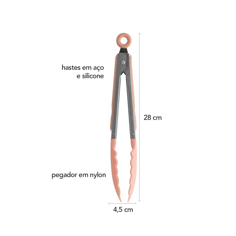 Pegador de Alimentos Pinça de Cozinha Nylon e Silicone Rosa
