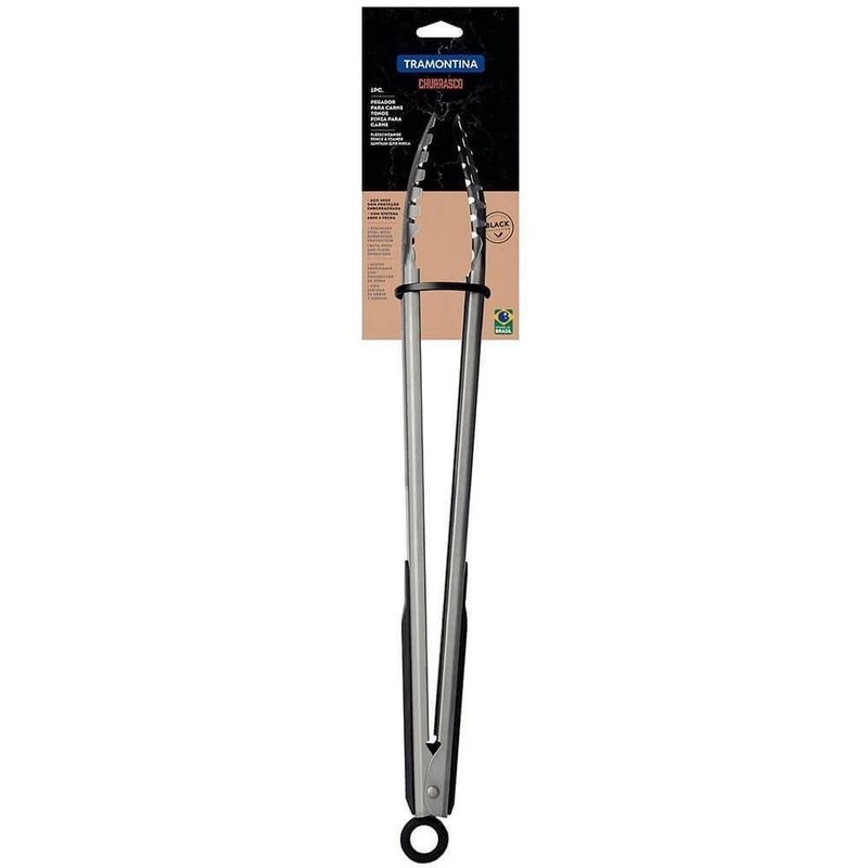 Pegador De Carne Tramontina Churrasco Black Com Lâmina Em Aço Inox E Proteção Emborrachada Preto- , firmeza e estilo no seu churrasco!- O Pegador de Carne Tramontina Churrasco Black combina a força do aço inox com a pegada confortável da proteção emborrachada, garantindo controle absoluto na hora de virar e servir as carnes.- Ideal para quem não abre mão de praticidade com um toque .- Feito para churrasqueiros exigentes que dominam a grelha com confiança.PEGADOR DE CARNE TRAMONTINA CHURRASCO BLACK COM LÂMINA EM AÇO INOX E PROTEÇÃO EMBORRACHADA PRETO 26593100Marca: TramontinaModelo: Churrasco Black Com Lâmina em Aço Inox e Proteção Emborrachada Preto 26593/100DESCRIÇÃO DO PEGADOR DE CARNE TRAMONTINA COM LÂMINA EM AÇO INOX E PROTEÇÃO EMBORRACHADA PRETO- Virar, transportar e servir seu churrasco ficou muito mais prático e fácil com o pegador de carne Tramontina Churrasco Black com lâmina em aço Inox e proteção emborrachada preto.- Desenvolvido para lhe oferecer e qualidade durante o preparo do seu churrasco.- Em aço inox com proteção emborrachada, ele conta com um sistema abre e fecha que garante um manuseio firme e muito confortável, sem travar no momento da utilização.- Tramontina e você, a combinação perfeita para um churrasco delicioso!INFORMAÇÕES GERAIS DO PEGADOR DE CARNE TRAMONTINA COM LÂMINA EM AÇO INOX E PROTEÇÃO EMBORRACHADA PRETO- Pegador de aço inox com proteção emborrachada.- Conta com sistema abre e fecha.RECOMENDAÇÕES DE USO DO PEGADOR DE CARNE TRAMONTINA COM LÂMINA EM AÇO INOX E PROTEÇÃO EMBORRACHADA PRETO- Antes da primeira utilização, lave bem a peça e seque-a.- Não utilize materiais abrasivos para limpeza e para maior durabilidade do produto recomenda-se secar bem antes de guardar. Não utilize em máquinas de lavar.- Para descarte do produto e embalagem siga as orientações de reciclagem vigentes.PESO- 0,23 kgGARANTIA- 90 dias para vícios ou de fabricação.DIMENSÕES- Dimensões Produto (Compr. X Larg. X Alt.): 45 x 3,9 x 4,1 cm.PERGUNTAS FREQUENTES:1. O pegador é feito de qual material?O pegador é produzido em aço inox de alta qualidade, com proteção emborrachada na área de , oferecendo maior conforto, e resistência durante o uso.2. O sistema abre e fecha é fácil de usar?Sim. O pegador conta com um sistema de trava abre/fecha que proporciona firmeza no manuseio, evitando travamentos e facilitando o uso durante o preparo e o das carnes.3. Posso lavar o pegador na máquina de lavar louças?Não. Para garantir a durabilidade do produto e preservar o acabamento emborrachado, recomenda-se lavar manualmente com sabão neutro e esponja macia, além de secar bem antes de guardar.4. Esse pegador é indicado apenas para churrasco?Embora seja ideal para churrascos, o pegador também pode ser utilizado em outros preparos de carne e alimentos quentes, sendo uma peça versátil para a cozinha ou área gourmet.5. O produto é resistente ao calor?Sim. O aço inox é naturalmente resistente a altas temperaturas e a proteção emborrachada proporciona uma pegada segura, mesmo durante o uso próximo ao calor da grelha ou churrasqueira. Modelo: Churrasco Black | EmbalagemLargura-cm: 10 | Marca: Tramontina | Cubagem: 0.002600 | Dias Fornecedor: 0 | Peso Líquido: 0.2300 | EmbalagemComprimento-cm: 52 | EmbalagemAltura-cm: 5 | Tipo de pinça: Pegador de carne
