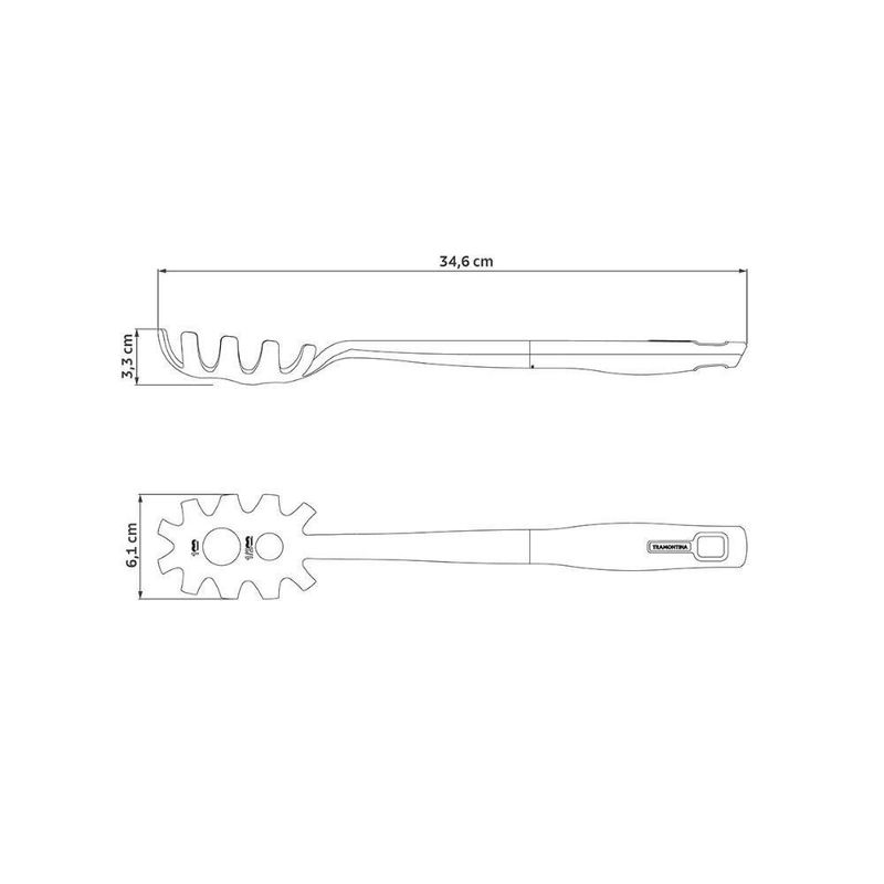 Pegador De Massa Verano Com Bojo Nylon E Cabo De Polipropileno Ônix - Tramontina 25574130Pegador de Massa Verano Com Bojo Nylon e Cabo de Polipropileno Ônix - Tramontina 25574130Conquiste o momento de servir massas com o Pegador de Massa Verano, o acessório essencial para quem busca total facilidade no manuseio e uma apresentação de mesa impecável. Ideal para jantares em família, buffets e qualquer ocasião onde a massa é a estrela, este utensílio otimiza a forma como você porciona espaguetes, fettuccine e outros tipos. O design exclusivo com dentes e um orifício central garante que você colete e escorra a massa rapidamente, o que é crucial para evitar que ela fique aguada no prato.A resistência a altas temperaturas do nylon permite que você manuseie massas recém-cozidas sem danificar o material, e o cabo robusto de polipropileno Ônix oferece uma pega firme e confortável durante o serviço. Produzido com materiais de excelente qualidade, o Pegador de Massa Verano da Tramontina oferece longa durabilidade e praticidade na limpeza, podendo ser lavado na máquina. O furo para pendurar na extremidade do cabo facilita o armazenamento, mantendo seus utensílios sempre acessíveis. Não perca a chance de ter um serviço mais eficiente e elegante. Adquira agora o Pegador de Massa Verano e sirva suas massas com maestria! Informações técnicas- Pegador de nylon, que resiste até uma temperatura de 180 °C.- Cabo de polipropileno com furo passante possibilitando que seja pendurado na sua cozinha.- Utensílio ideal para uso em panelas com revestimentos antiaderentes e cerâmicos, pois não danifica o produto.- Pode ir à máquina de lavar louças facilitando seu dia a dia.Recomendações de uso- Antes da primeira utilização, lave bem a peça e seque-a.- Para maior durabilidade do produto recomenda-se secar bem antes de guardar, mesmo após lavagem em máquina.- Para descarte do produto e embalagem siga as orientações de reciclagem vigentes. Fonte de energia: Não possui | Cor: Cinza | Fabricante: Tramontina | Número do modelo: 25574130 | Principais Características do Produto 1: Pegador | Tipo de Talher: Pegador | Material: nylon | Principais Características do Produto 2: Nylon | Instruções de cuidados com o produto: 1 | Baterias são necessárias?: Não | Certificação de teste externa: Não | Número de caixas: 1 | Principais Características do Produto 0: Com Bojo | Palavras-chave de Pesquisa: Pegador de Massa Verano Com Bojo | Contém conteúdo líquido: Não | Componentes incluídos: Pegador de Massa Verano Com Bojo | Quantidade de itens: 1 | Selecione: Pegador de Massa Verano Com Bojo