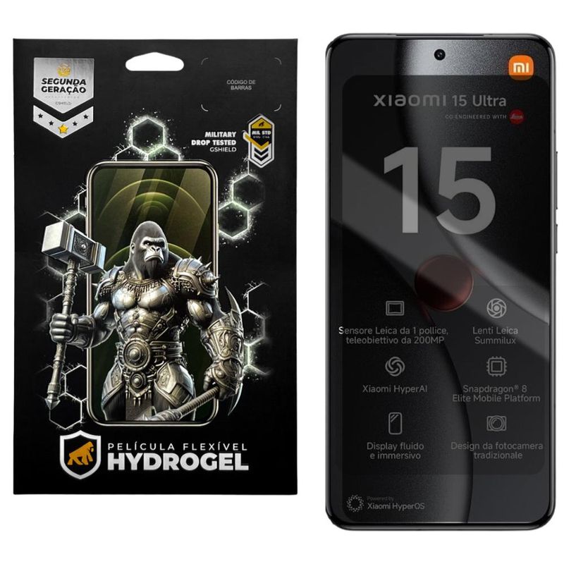 DESCRIÇÃO Aumente a resistência do seu Xiaomi 15 Ultra com a película de Hydrogel! A Película de Privacidade de Hydrogel para Xiaomi 15 Ultra da Gshield é a escolha ideal para reforçar a proteção da tela do seu dispositivo enquanto preserva sua privacidade. Desenvolvida com a inovadora tecnologia hidro nano pet e TPU Soft Gel, essa película é resistente contra riscos indesejados. O revestimento oleofóbico da película não apenas aprimora a resistência contra arranhões, mas também reduz as marcas de digitais na tela, proporcionando uma visão clara e nítida em todos os momentos. A adaptação perfeita às extremidades curvadas do seu dispositivo assegura uma cobertura completa do visor, preservando a estética e funcionalidade do aparelho. Escolher a Película de Hydrogel Gshield é optar por um escudo de proteção sofisticado, que une tecnologia de ponta e durabilidade para manter a tela do seu celular impecável. Cuide do seu Xiaomi 15 Ultra com estilo e confiança, investindo na excelência em proteção que só a Gshield proporciona. Clique aqui para acessar os manuais dos produtos Gshield. ESPECIFICAÇÕESMaterial: Hidro nano pet + TPU Soft Gel Marca: GshieldEspessura: 0,19mm Proteção: Contra pequenos impactos e riscos à tela Dimensões: Cobre todas as dimensões do aparelho, podendo haver pequenos recuos para melhor a aderências nas laterais. Certificações: US Military
