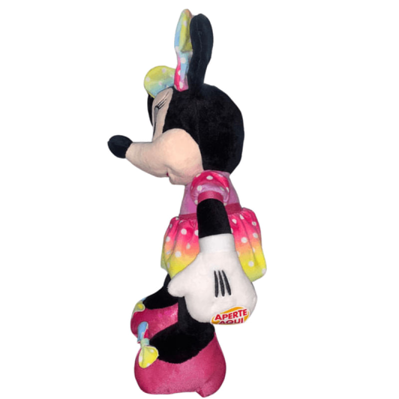 Pelucia - Disney - Minnie Rainbow - Luz e Som - MULTIKIDSPelucia - Disney - Minnie Rainbow - Luz e Som Feita com materiais de alta qualidade, essa pelúcia é super fofa e macia ao toque, proporcionando momentos de diversão e alegriaCom aproximadamente 40 cm de altura, a Minnie ganha vida nessa pelúcia encantadora Aperte a mão dela para suas bochechas ficarem vermelhas e reproduzir sons de beijos e frasesDetalhes: Certificação: Certificado Pelos Órgãos Autorizados - OCP`S(Organismos De Certificação De Produtos) Registro:007903/2022 OCP00098Características: Conteúdo da Embalagem: 1 Pelucia Material/Composição: Poliéster Ref: BR2196 Marca: Multikids Modelo: Minnie Linha: Disney Idade Indicada: 2+M Código de Barras: 7908685693957 Altura Aproximado do Mickey: 40cm Requer Pilhas: 3 Pilhas LR44(1,5V) (Inclusas Apenas ParaTeste) Aviso: As cores podem variar entre as imagens mostradas acima e o produto Imagens meramente ilustrativas Garantia: 3 Meses Contra Defeito de Fabricação