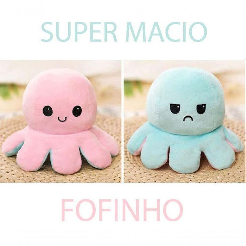 Pelúcia Polvo Reversível Fofura Macio Feliz Bravo EngraçadoPelúcia Polvo Reversível Fofura Macio Feliz Bravo EngraçadoBoneco Pelúcia Polvo macio com expressão contorno realista. O design exclusivo da Abraço de Gorila oferece uma experiências visuais e sensoriais diferentes.Esse lindo polvo de pelucia é muito engraçadinho. Use para demonstrar que está cheio de alegria e também para mostrar quando está bravo ou brava.Categoria: Plush / PelúciaTamanho Aproximado: 20 x 20 x 10 cmO produto é seguro e não-tóxico.Lavável: Fácil de limpar, use pouco sabão e água para remover manchas e deixar secar naturalmente.Brinquedo perfeito para presentear crianças e adultos, presente de aniversário e presente de natal.OCP0098Segurança InmetroCE-BRI/BRICS 00860-18NM 300/2002Segurança do Brinquedo