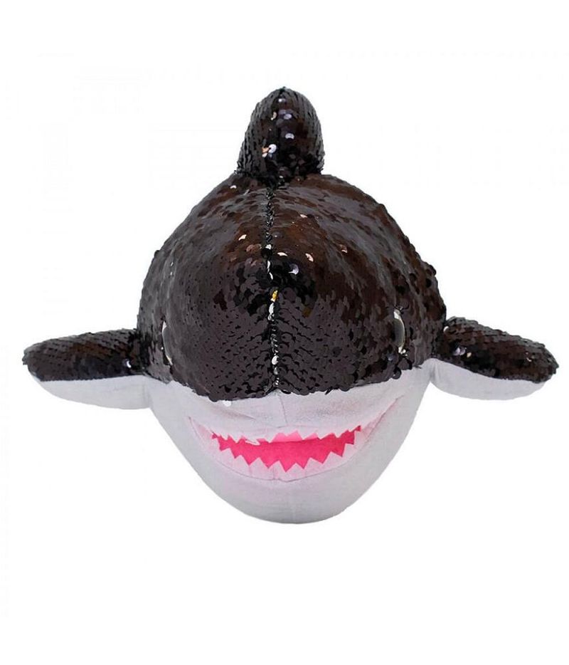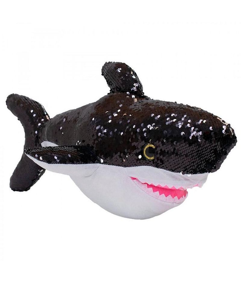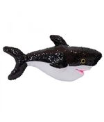 Pelúcia Tubarão Lantejoulas Preto Prateado 56cm Bichinho de tubarão com 56cm de comprimento revestido de lantejoulas uma face na cor preta e outra na cor prateada. Olhos amarelos de plástico. Material: lantejoulas e pano; Enchimento: fibra de poliéster Informação Adicional: Peso (Kg) 0.47 Altura (cm) 24.00 Largura (cm) 39.00 Comprimento (cm) 56.00 Certificado Produto certificado por Órgão acreditado pela CGCRE do INMETRO