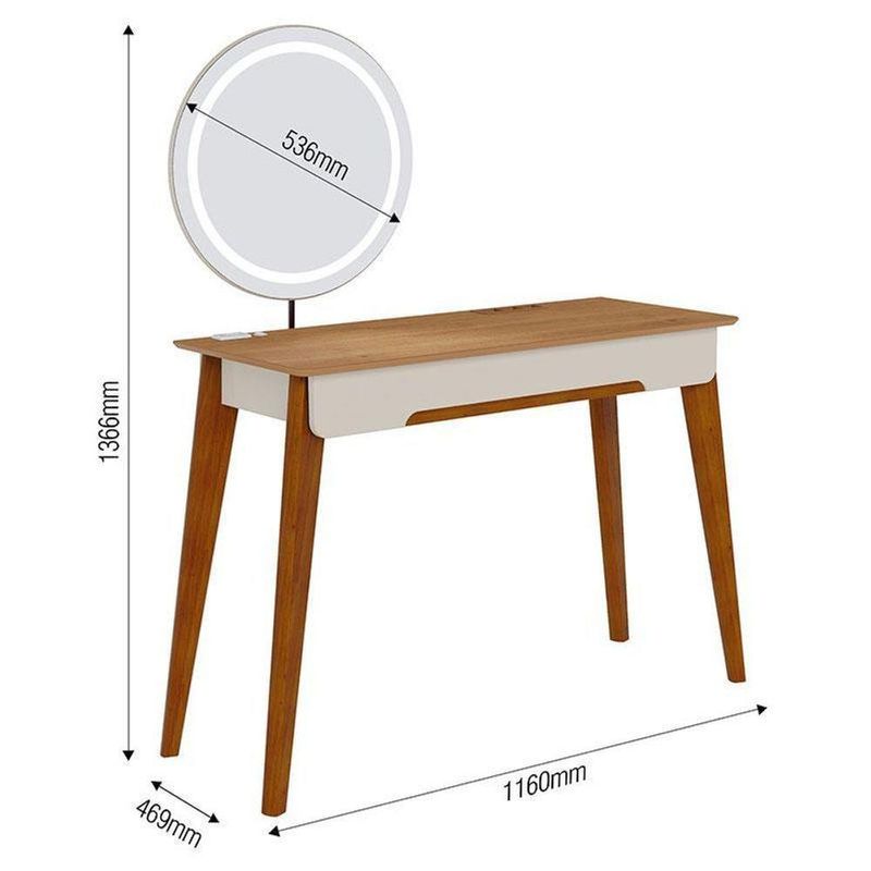 Penteadeira Ambiente Jazz Off White Nature Com Led - ImcalPenteadeira Ambiente Jazz Off White Nature com Led - ImcalA penteadeira da linha Jazz é uma peça elegante e funcional que certamente acrescentará ao seu ambiente. Possuindo uma gaveta dupla espaçosa, ideal para guardar suas maquiagens e objetos. A moldura do espelho com haste em aço é giratória, proporcionando flexibilidade para ajustar conforme necessário. Contando com um porta objeto para manter seus itens organizados e ao seu alcance. Um dos destaques é a presença de uma tomada embutida, oferecendo praticidade para conectar seu aparelho. O botão de liga/ desliga do LED, juntamente com a iluminação LED ao redor do espelho, proporcionando um ambiente agradável. Seu pé em madeira maciça garante mais estabilidade e robustez. Com materiais de alta qualidade e um design sofisticado, é produzido pela Imcal, sendo a escolha ideal para quem busca praticidade, elegância e funcionalidade em um único móvel. Confira e garanta o seu!Características técnicas:- Desenvolvido em 100% MDF - Pintura na cor Off White Nature - Acabamento em UV fosco brilho - Possui uma gaveta dupla - Possui porta objetos - Possui uma tomada - Botão liga/ desliga do LED - Moldura com espelho giratório - Haste em aço - LED entorno do espelho jateado - Pés em madeira maciça - Lindo designDimensões:Altura: 136,6 cm Largura: 116 cm Profundidade: 46,9 cmInformações importantes:*Não realizamos a montagem ou instalação do produto, porém acompanha manual de instruções. *Toda mercadoria segue segurada contra qualquer sinistro, em caso de anormalidade, recuse. *As caixas ou pacotes possuem identificação com o nome, cidade e quantidades de volumes relativos à compra para conferencia do recebedor. Modelo: | Profundidade: | Marca: | Altura: | Largura: | Materiais da estrutura: | Principais Características do Produto 0: | Principais Características do Produto 1: | Principais Características do Produto 2: | Certificação de teste externa: | Cor: | Baterias são necessárias?: | Componentes incluídos: | Dimensões do item P x L x A: | Exige montagem: | Is Fragile: | Peso do item: | Fabricante: | Número de caixas: | Número do modelo: | Número da peça: | Quantidade de itens: