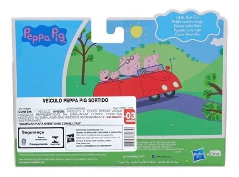 Peppa Pig Carro Vermelho C/ Boneco Peppa Articulado - Hasbro no mundo da peppa pig, há tantas maneiras de viajar!Peppa e sua família são frequentemente vistos em seu fiel carrinho vermelho, indo em direção a sua próxima aventura.Inspirado no veículo visto na aclamada série animada, este pequeno carro vermelho vem com uma figura da Peppa em escala de 3 polegadas.Crianças em idade pré-escolar de 3 anos ou mais podem rolar suas rodas e imaginar Peppa viajando para encontrar algumas poças de lama para pular Idade acima de 3 anos Contem 1 veiculo e 1 boneco Tamanho da embalagem 22 x 17 x 8 cm Fabricante Hasbro