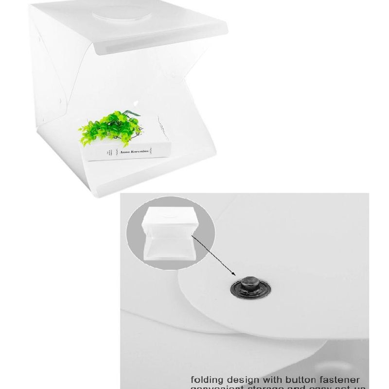 Pequeno Estudio Fotografico Iluminação Led 30cmPequeno Estúdio Fotográfico Iluminação Led 30cmEstúdio de fotografia dobrável e portátil.Permite que todos possam ter um incrível estúdio-fotos de qualidade com seu celular ou com uma configuração simples.Especificações/Características do Produto- Material: acrílico + ABS plástico- Fonte de alimentação: USB- Cor: Branco- Dimensões: 30 x 30 cm- Estrutura magnética - Montagem simples- Design dobrável- Iluminação: 1 LedItens Inclusos:- 1 Estúdio- 1 Fita Led- 1 Cabo USB- 1 Bolsa Case- 1 Fundo Preto- 1 Fundo BrancoAtenção:1 - O cliente tem até 7 dias corridos, após o recebimento, para devolução do produto (artigo 49)2 - Lembrando que o produto deve retornar sem defeitos3 - Imagem Meramente ilustrativa