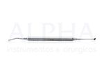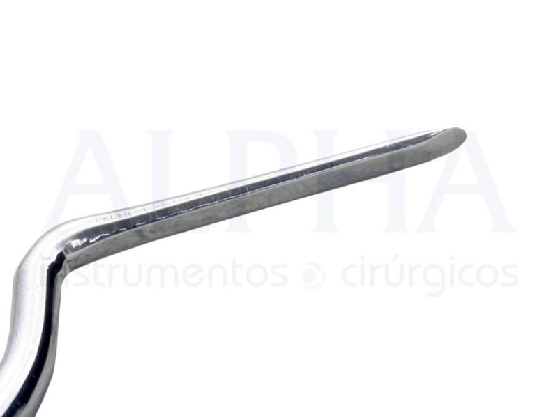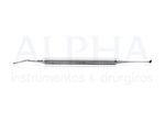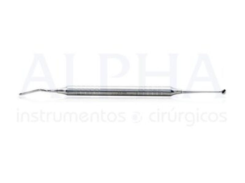 Periótomo Curvo Grontal com Molt 2. Instrumento cirúrgico não articulado cortante. Produzido em aço inoxidável com extra tratamento contra oxidação. Instrumental padrão, qualidade e acabamento impecável. O periótmo é utilizado para romper os ligamentos periodontais, muito utilizado em extrações e implantes de carga imediata. Possui a ponta curva e frontal, o que facilita o acesso em determinadas regiões. A cureta molt 2 é utilizada para descolamento do periósteo, para cirurgias em geral.