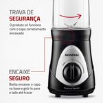 "Leve suas bebidas para onde quiser! Com o Personal Blender você prepara sucos, vitaminas, shakes e coquetéis e pode carregar para academia, escritório ou qualquer outro lugar. Os 300W de potência proporcionam um excelente desempenho no preparo das bebidas. Saiba mais sobre o DG-01 da Mondial: 2 COPOS PARA LEVAR COMO SQUEEZE: São 2 copos, de 750ml cada, super-resitentes para preparar shakes, sucos, vitaminas e coquetéis. Os copos se transformam em squeeze e podem ser levados para a academia, escritório ou para onde você for. Sua rotina fica muito mais prática! POTÊNCIA: 300W: Excelente desempenho e eficiência no preparo das suas bebidas. LÂMINAS EM AÇO INOX: São mais resistentes, duráveis e ideais para triturar frutas e até cubos de gelo. FÁCIL DE GUARDAR: O blender tem design compacto e é desmontável, facilitando seu armazenamento. PÉS ANTIDERRAPANTES: Mantém o produto estável e proporciona mais segurança durante o uso. VIDA SAUDÁVEL + PRATICIDADE: Com a correria da rotina diária, costuma ser um desafio seguir uma alimentação saudável, né? Com o Blender Mondial, você pode preparar sucos naturais, vitaminas ou suplementos de forma rápida e prática, e carregar com você para onde for! Muito mais fácil para manter os bons hábitos alimentares!" Atenção: para funcionamento do produto, girar o copo para desativar a trava de segurança.