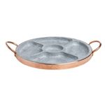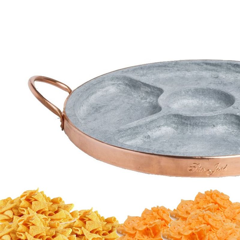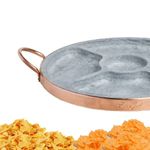 Pestisqueira Pedra Sabão e Alça Cobre com Divisória 28x3cm A petisqueira em pedra sabão e cobre com divisória é perfeita para servir petiscos de forma elegante, prática e com aquele toque rústico sofisticado que valoriza qualquer mesa. A pedra sabão ajuda a manter a temperatura dos alimentos por mais tempo, sendo ideal para servir queijos, carnes, linguiças, petiscos quentes ou frios, enquanto as divisórias facilitam a organização dos alimentos sem misturar sabores. O acabamento em cobre traz charme, resistência e segurança no manuseio, além de deixar a peça ainda mais bonita para servir direto à mesa. Muito utilizada em encontros com amigos, churrascos, bares e restaurantes, essa petisqueira une funcionalidade, durabilidade e apresentação diferenciada, tornando o momento de servir muito mais prático e agradável, com um produto que chama atenção pela qualidade e pelo visual artesanal. Características Técnicas:Diâmetro: 28cm.Altura: 3cm.5 Divisórias.Peso: 3,4Kg. Itens Inclusos:01 Pestisqueira Pedra Sabão e Alça Cobre com Divisória 28x3cm. Código: AF1182INDSJ