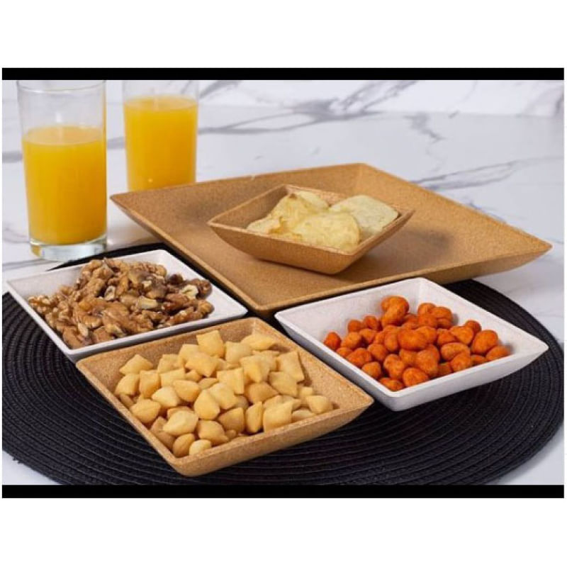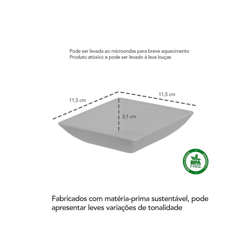 Petisqueira Bambu e tigelas quadradas. Suporte com divisória em bambu orgânico e natural, perfeita para petisqueira ou gamela. A petisqueira é resistente, pratica e fica incrível na hora de servir. O suporte em bambu é produzido em material leve, durável e 100% ecológico já que é renovável e não poluente. As fibras do bambu possuem um agente orgânico que previne a proliferação de bactérias e o aparecimento de fungos. As tigelas são fabricadas com matéria-prima sustentável, atóxica e desenvolvida por meio da mistura entre 69% de materiais provenientes de fontes renováveis, sendo madeira, polietileno verde e uma parcela reduzida de polipropileno. Pode ser levado à lava louças e microondas para breve aquecimento. Os produtos EVO são inovadores, utilizando-se em sua fabricação de 55% de madeira de reflorestamento, provenientes de fontes renováveis, em vez de plásticos, provenientes de fontes de origem não renováveis. Contêm: 2 Tigelas Quadradas Medidas: 11,5 x 11,5 x 3,1 cm 1 Petisqueira de Bambu Medidas: 28 x 28 x 1,2 cm Casacha é uma loja virtual com artigos para casa, cozinha, banheiro e lavanderia.