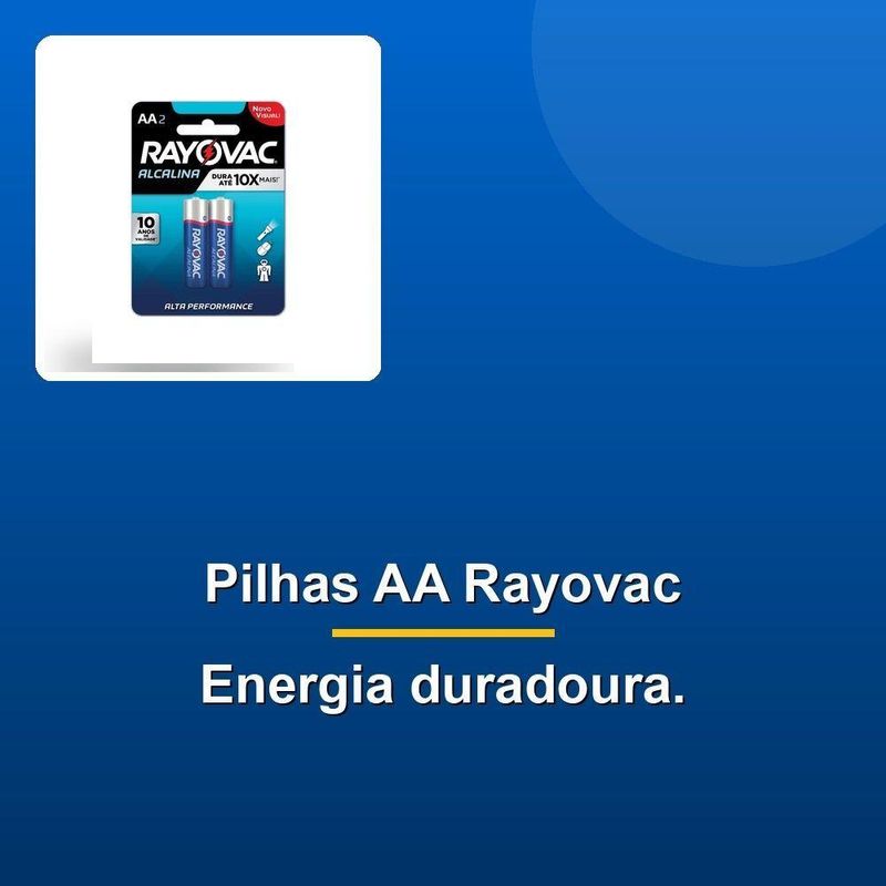 Pilha Alcalina Aa C/2Descubra a liberdade de usar seus dispositivos com a Pilha Alcalina AA, projetada para aparelhos tecnológicos e de alto consumo de energia. Esta pilha de alta performance é resultado de um rigoroso processo de seleção de fornecedores, garantindo que você tenha uma experiência agradável em sua compra. Nossa equipe se empenha em entregar cada item de forma rápida e eficiente, com paixão pela excelência em todos os nossos produtos.As Pilhas Alcalinas Rayovac são a escolha certa para quem busca confiabilidade e desempenho em seus dispositivos. Com uma vida útil mais longa, você pode curtir seu tempo com familiares e amigos sem se preocupar com a vida útil da bateria. Nossa equipe trabalha arduamente para entregar produtos que você possa confiar e se orgulhar de utilizar. Acreditamos que a qualidade é um reflexo do nosso compromisso com a satisfação de nossos clientes. Com a Pilha Alcalina AA, você pode contar com uma experiência de compra agradável e produtos de alta qualidade.Descubra a liberdade de usar seus dispositivos com a Pilha Alcalina AA, projetada para aparelhos tecnológicos e de alto consumo de energia. Esta pilha de alta performance é resultado de um rigoroso processo de seleção de fornecedores, garantindo que você tenha uma experiência agradável em sua compra. Nossa equipe se empenha em entregar cada item de forma rápida e eficiente, com paixão pela excelência em todos os nossos produtos.As Pilhas Alcalinas Rayovac são a escolha certa para quem busca confiabilidade e desempenho em seus dispositivos. Com uma vida útil mais longa, você pode curtir seu tempo com familiares e amigos sem se preocupar com a vida útil da bateria. Nossa equipe trabalha arduamente para entregar produtos que você possa confiar e se orgulhar de utilizar. Acreditamos que a qualidade é um reflexo do nosso compromisso com a satisfação de nossos clientes. Com a Pilha Alcalina AA, você pode contar com uma experiência de compra agradável e produtos de alta qualidade.
