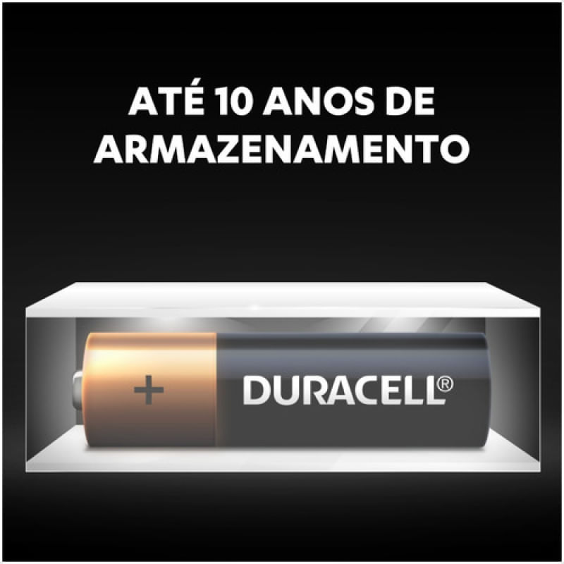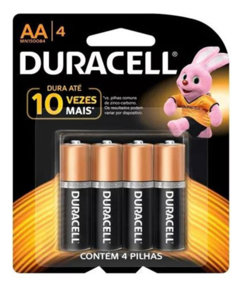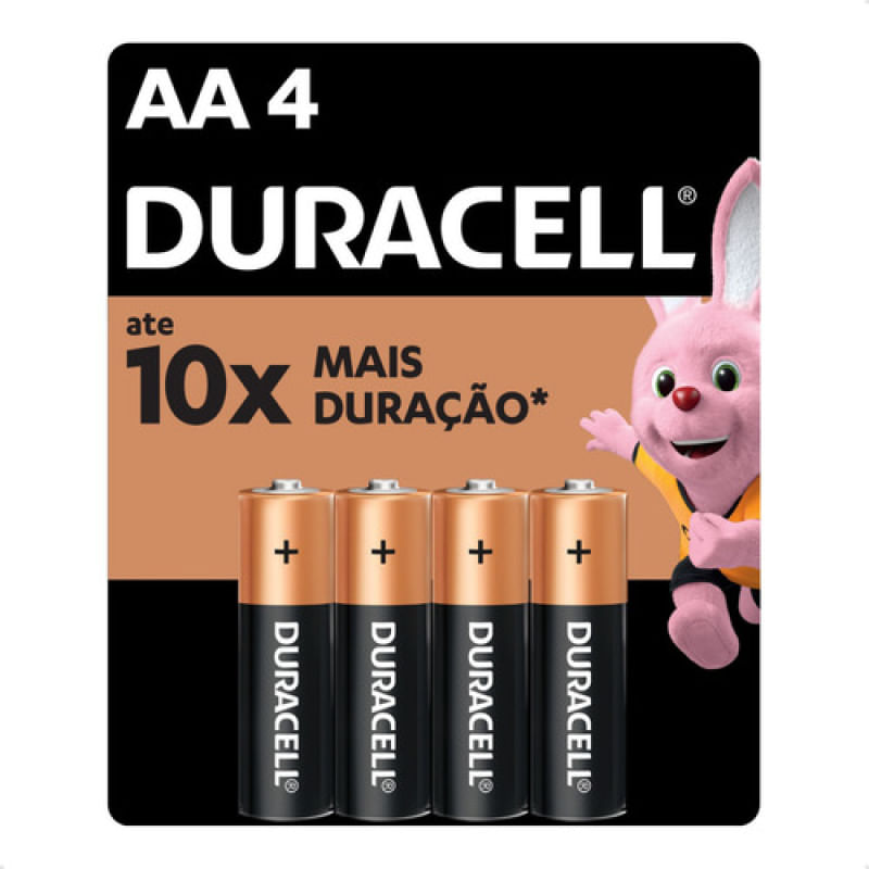 Pilha Alcalina AA4 - Duracell Descrição Desenvolvida com tecnologia superior e ingredientes de alta qualidade, a pilha AA foi fabricada para um rendimento duradouro e eficaz, essencial para o dia a dia. As pilhas AA proporcionam energia confiável aos aparelhos do dia a dia, como brinquedos, controles remotos, mouse e teclado sem fio, lanternas, controle de videogame, etc. Além disso, a tecnologia Duracell preserva a energia das pilhas não utilizadas por até 10 anos e dura até 10 vezes mais que pilhas comuns de zinco-carbono (os resultados podem variar por dispositivo). CONTEÚDO DA EMBALAGEM 1 Cartela com 4 pilhas AA alcalina -Peso: 102 g -Altura: 4,7 cm -Largura: 1,3 cm