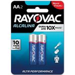 Pilha Alcalina Rayovac AA 2 UnidadesAs pilhas alcalinas Rayovac AA duram até 10x mais que as pilhas comuns (zinco). Recomendadas para dispositivos de alto consumo de energia, como brinquedos, lanternas, relógio de parede, mouse, etc. Com 10 anos de validade, se não utilizadas, as pilhas podem ser armazenadas por até 10 anos mantendo no mínimo, 60% da carga. Livres de mercúrio e cádmio. Contém 2 unidades.