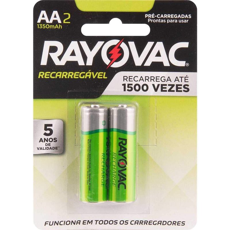 Pilha Recarregável Pequena (aa), 1,2 V, 2 Peças, 55802 Rayovac - Conteúdo da embalagem: 1 BlÃster com 2 pilhas. Aplicação: Indicada para aparelhos de alto consumo de energia, como: rádios portáteis, câmeras digitais, lanternas e outros aparelhos eletrônicos. Destaques: O uso de pilhas recarregáveis reduz o número de pilhas descartadas. Dessa forma o impacto ambiental é reduzido drasticamente. Não possui efeito memória, ou seja, não perde sua capacidade energética caso não seja recarregada completamente. Capaz de manter a carga por até 6 meses quando não está sendo usadas. Fabricada com a tecnologia NiMH, pode ser recarregada em qualquer carregador. Pré-carregada. Garantia - E (CDC): Garantia legal: 90 dias Referência: 55802 - RAYOVAC Tipo da pilha: Recarregável Massa aproximada (peso): 0,046 kg Modelo da pilha: Pequena (AA) Tensão da pilha (V): 1,2 V Destaques Comercial: Pilha recarregável NiMH, sem efeito memória, mantém carga por até 6 meses e é compatÃvel com qualquer carregador. Aplicação Comercial: Para aparelhos de alto consumo, como rádios, câmeras digitais, lanternas e outros eletrônicos. Características Gerais do Produto: Garantia: • 3 Meses