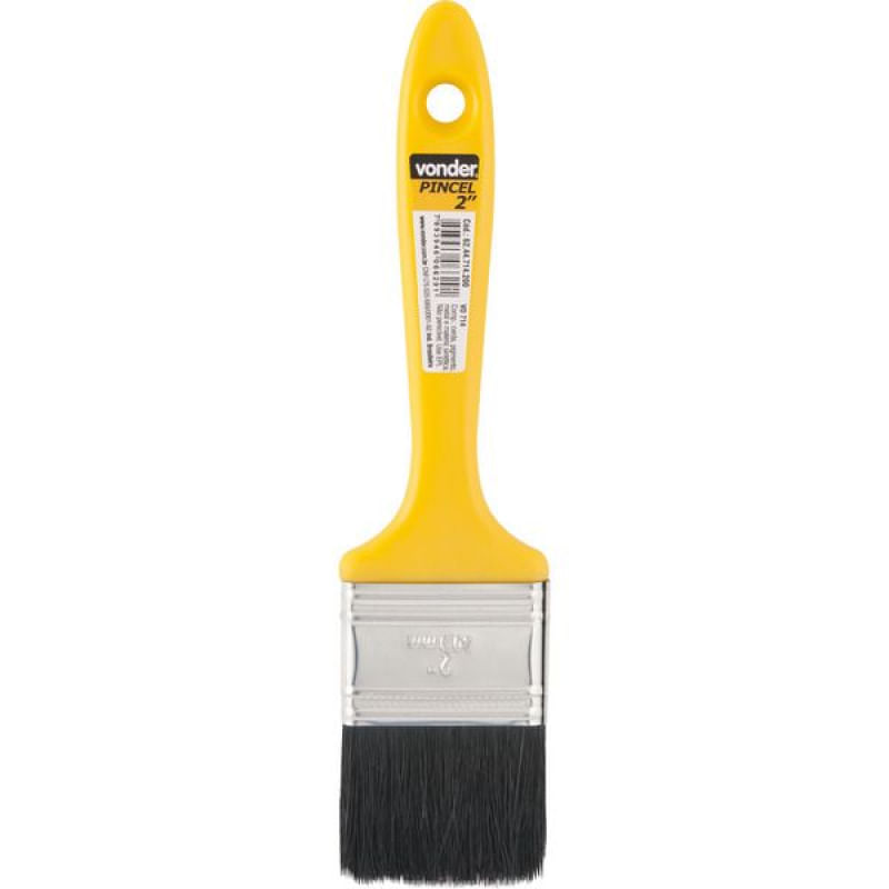 Conteúdo da embalagem1 PincelAplicações e dicas de usoIndicado para pinturas em geral com esmaltes sintéticos e tintas a óleo. Utilizado também na limpeza de peças e máquinas.Destaques e diferenciaisExcelente aplicação em acabamentos finos e recortes precisos DETALHES TÉCNICOS Largura do pincel 2.1/2" - 64 mm Material das cerdas do pincel: Natural Cor das cerdas do pincel : Preta Material do cabo do pincel: Plástico Cor do cabo do pincel: Amarelo