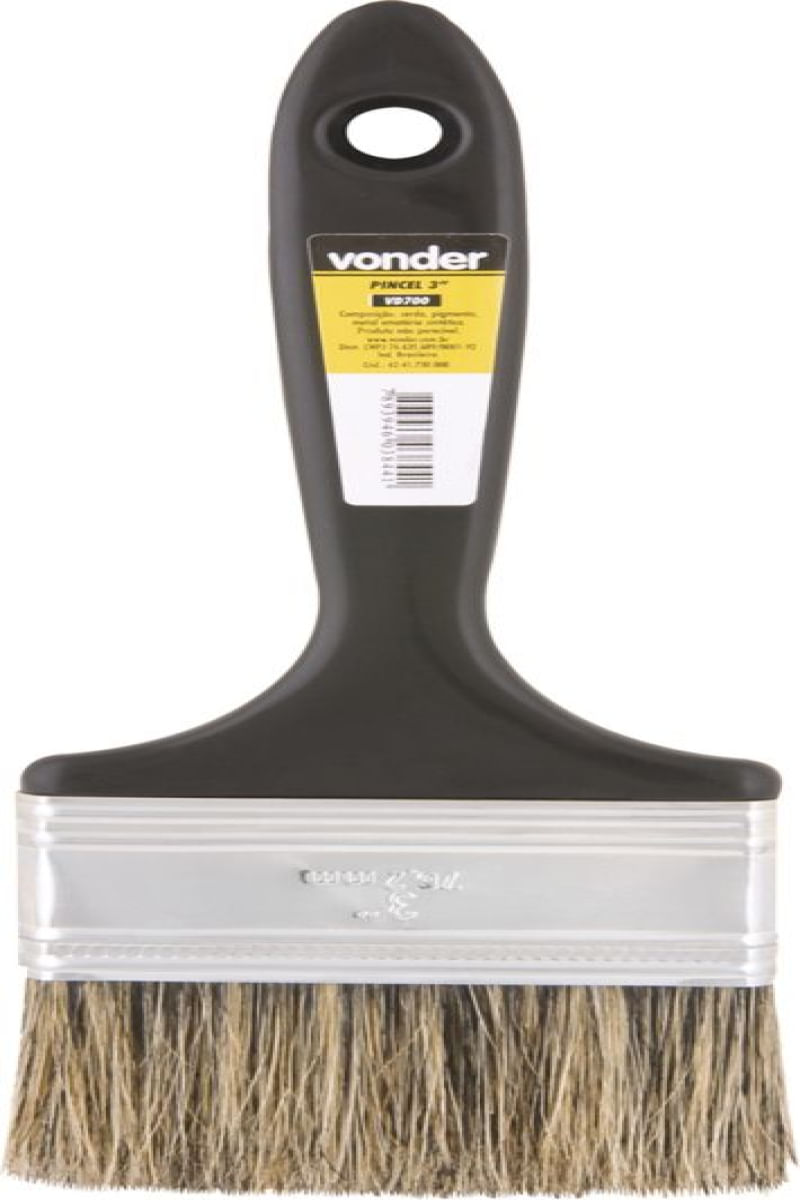 Conteúdo da embalagem1 PincelAplicações e dicas de usoIndicado para pinturas em geral com tintas látex e acrílicas. Utilizado também na limpeza de peças e máquinas.Destaques e diferenciaisEconômico e proporciona excelente acabamento DETALHES TÉCNICOS Largura do pincel: 3" - 76 mm Material das cerdas do pincel: Natural Cor das cerdas do pincel: Gris Material do cabo do pincel: Plástico Cor do cabo do pincel: Preto
