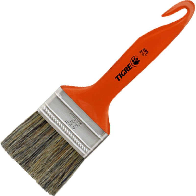 Pincel Trincha Média 2.1/2", Cerda Gris, Tigre - Conteúdo da embalagem: 1 Pincel. Aplicação: Indicado para aplicação de vernizes e stain em superfÃcies de madeira. Destaques: Possui cabo plástico com encaixe formato anzol. Referência: 6241695212 Garantia - E (CDC): Garantia legal: 90 dias Modelo: 695 Material das cerdas do pincel: Misto Cor das cerdas do pincel: Gris Material do cabo do pincel: Plástico Cor do cabo: Laranja Massa aproximada (peso): 0,69 kg Destaques Comercial: Possui cabo plástico com encaixe formato anzol. Aplicação Comercial: Indicado para aplicação de vernizes e stain em superfÃcies de madeira. Características Gerais do Produto: Garantia: • 3 Meses
