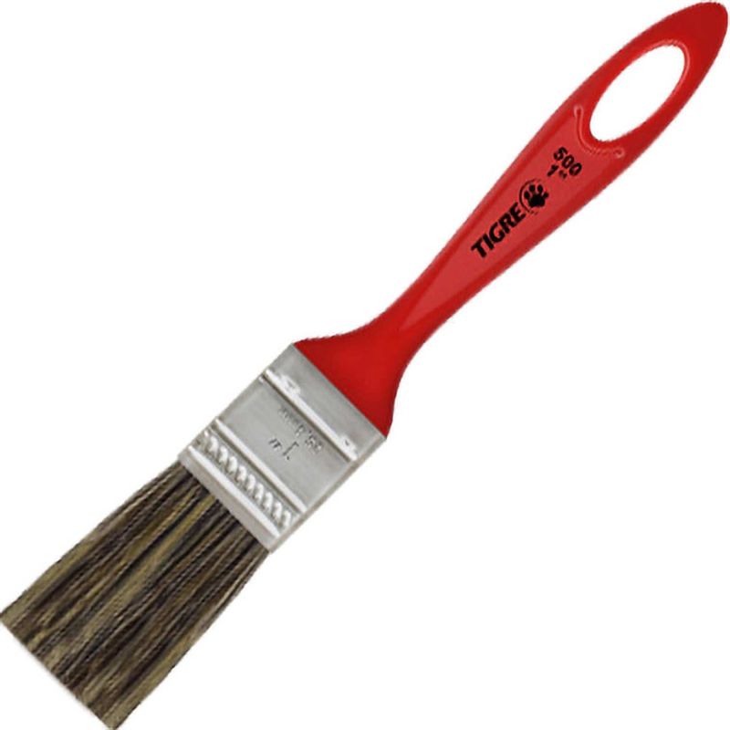 Pincel Trincha Simples 1", Cerda Gris, Tigre - Conteúdo da embalagem: 1 Pincel. Aplicação: Indicado para aplicação de tintas látex e acrÃlica em paredes. Destaques: Proporciona boa cobertura de tinta na superfÃcie. Referência: 6241500100 Garantia - E (CDC): Garantia legal: 90 dias Modelo: 500 Material das cerdas do pincel: Misto Cor das cerdas do pincel: Gris Material do cabo do pincel: Plástico Cor do cabo: Vermelho Massa aproximada (peso): 0,12 kg Destaques Comercial: Proporciona boa cobertura de tinta na superfÃcie. Aplicação Comercial: Indicado para aplicação de tintas látex e acrÃlica em paredes. Características Gerais do Produto: Garantia: • 3 Meses