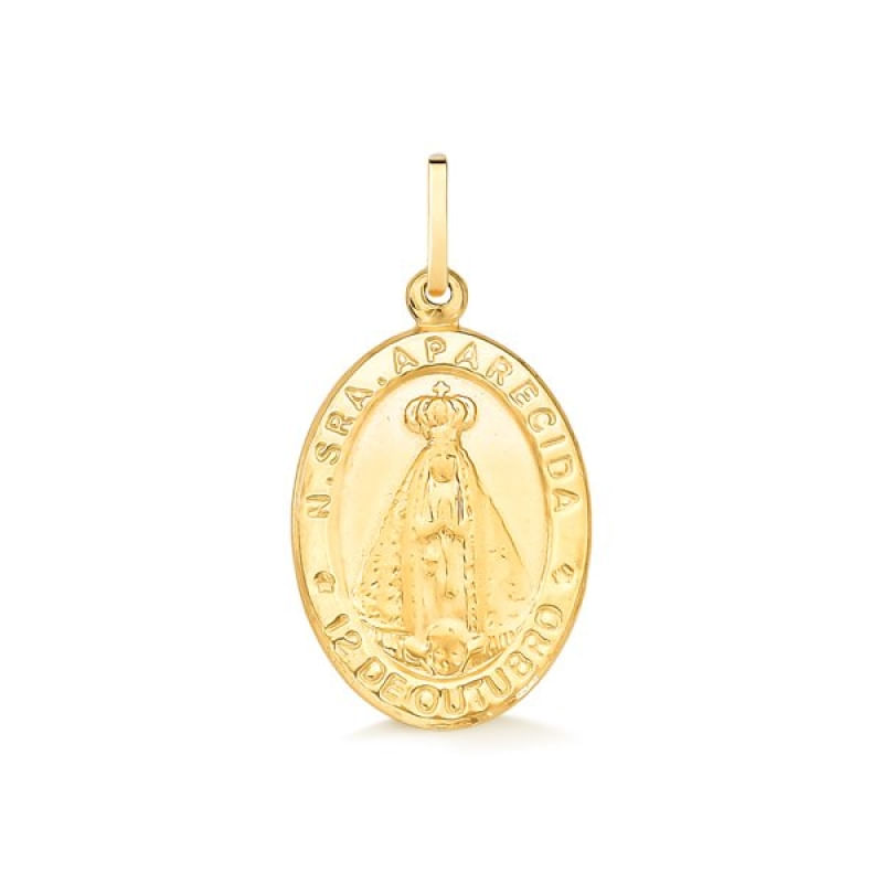 O pingente é fabricado em Ouro 18k. A peça possui um belo simbolo de proteção, sendo ideal para presentear quem se ama ou para si mesmo. Compre online seu Pingente de Ouro 18k Medalha Nossa Senhora Aparecida. Acompanha embalagem para presente e certificado de garantia. Enviamos para todo o Brasil. Joia em Ouro Amarelo 18k Pingente de Ouro Diametro aproximado: 1,2 cm Preço referente ao pingente, corrente não acompanha a peça. Todas as joias acompanham embalagem para presente, certificado de garantia e nota fiscal. Veja mais Pingentes de Ouro.