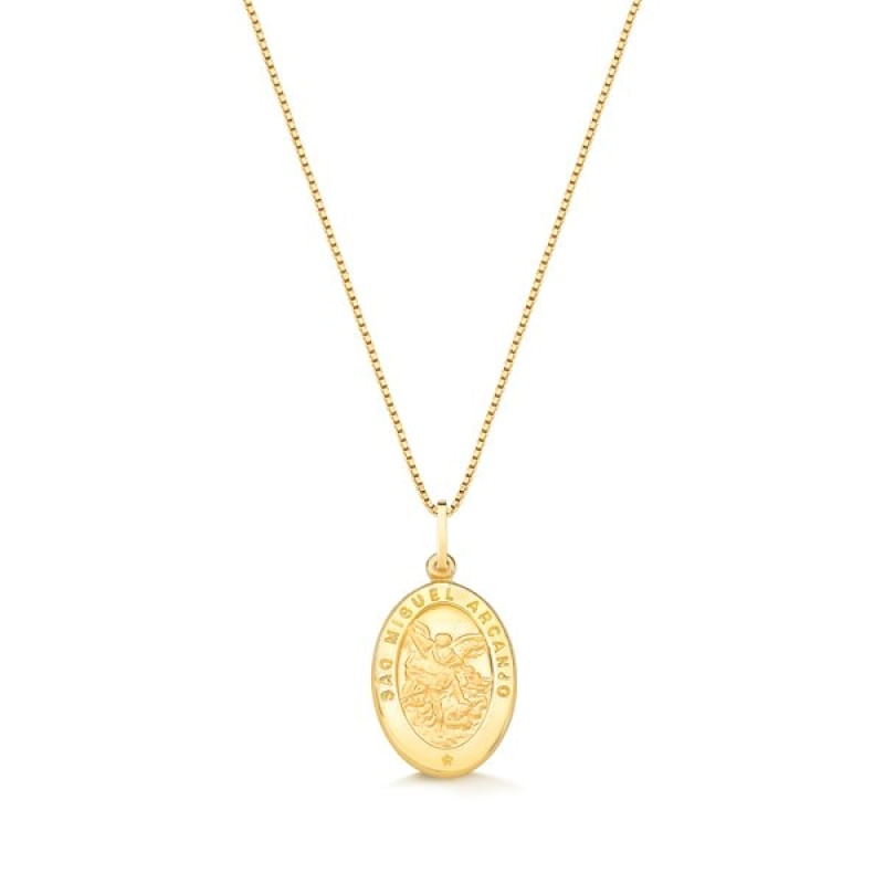 A peça possui um belo símbolo de proteção, sendo ideal para presentear quem se ama ou para si mesmo. Compre online seu Pingente de Ouro 18k São Miguel Arcanjo. Acompanha embalagem para presente e certificado de garantia. Enviamos para todo o Brasil. Joia em Ouro Amarelo 18k Pingente de Ouro Tamanho aproximado: 1,8 cm x 1,2 cm Preço referente ao pingente, corrente não acompanha a peça. Todas as joias acompanham embalagem para presente, certificado de garantia e nota fiscal. Veja mais Pingentes de Ouro