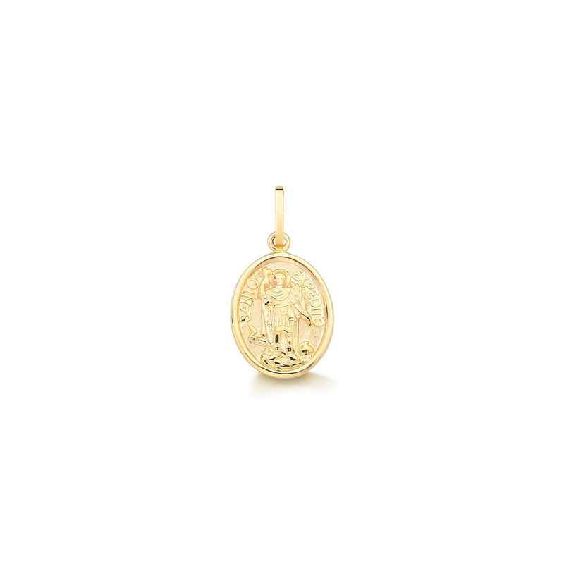 O pingente é fabricado em Ouro. A peça possui um belo simbolo de proteção, sendo ideal para presentear ou para si mesmo. Compre online seu Pingente de Ouro Medalha Santo Expedito. Acompanha embalagem para presente e certificado de garantia. Enviamos para todo o Brasil. Joia em Ouro Amarelo 10k Pingente de Ouro Altura aproximada: 1,2 cm Largura aproximada: 0,9 mm Preço referente ao pingente, corrente não acompanha a peça. Todas as joias acompanham embalagem para presente, certificado de garantia e nota fiscal. Veja mais Pingentes de Ouro.