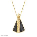 Nossas joias são elaboradas com Prata (925) que garante qualidade e beleza incomparáveis. Além do design diferenciado, as altas tecnologias usadas na fabricação podem ser facilmente percebidas no resultado final de cada joia. Pingente em Prata Revestido Nossa Sra. Aparecida com Zircônia Black 26mm Material: Prata Revestido em Ouro 18KCor: DouradaTamanho: 26.0mm.Pedra: Zircônia Black TECNOLOGIAS CONVEXOURO 18k (tecnologia única e exclusiva no mundo que insere a cor do OURO 18k na prata 925).O uso da prata nas joias traz a elegância de um dos metais mais nobres, tornando cada detalhe especial, sendo um material clássico que se mantem em alta na moda e estilo. O ANÚNCIO SE REFERE A 1 (UMA) UNIDADE DO PINGENTE. ESSA PEÇA ACOMPANHA:* Certificado de Garantia* Embalagem para Presente* Nota Fiscal Cuidados com sua Joia Convex• Joias podem ser danificadas por produtos químicos, sabonetes, batidas fortes ou fricção intensa. Evite usá-las em tarefas domésticas, e retire os anéis ao lavar as mãos.• Pedras e metais têm diferentes graus de dureza e podem arranhar. Guarde este produto individualmente e tenha cuidado com o contato das joias com outros objetos quando as estiver usando.