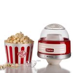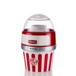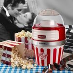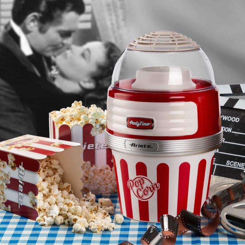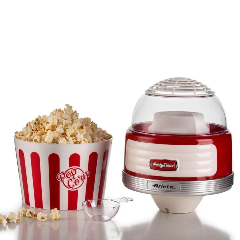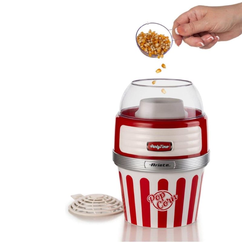 A máquina de pipoca da linha Party Time da Ariete acompanhará suas noites em família ou amigos, com pipocas caseiras crocantes e apetitosas prontas para serem mastigadas uma após a outra. Graças ao método especial de cozimento com ar quente, a Pipoqueira Retrô Party Time transforma 60g de milho em pipocas perfumadas e leves em menos de 2 minutos. Não será necessário adicionar mais nada, nem óleo, nem gordura, para obter um lanche leve mas saboroso, totalmente natural e sem gordura. Graças à tigela removível você pode levar suas pipocas quentes e crocantes diretamente para a mesa ou para o sofá. - Especificações:• Cor: Vermelha• Modelo: 2957• Voltagem: 220V• Poder: 1100 W• Capacidade: 60g de milho em 2 minutos• Distribuidor: Sim• Comprimento do produto: 21cm• Largura do produto: 21cm• Altura do produto: 32cm• Peso do Produto: 1,27kg• Peso da caixa: 1,77kg• SKU: 00C295700ARBR