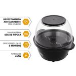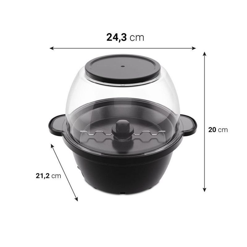 Pipoqueira Elétrica Philco 2 em 1 Antiaderente 65g PPIE03A 110VPipoca perfeita em minutos? Com a Pipoqueira Elétrica Philco 2 em 1, isso é realidade! Seu sistema com haste de agitação aquece os grãos de forma uniforme, evitando queimar e garantindo sabor. Com 450W de potência, a Pipoqueira Philco prepara até 65g de pipoca em 3 a 5 minutos. O revestimento antiaderente facilita a limpeza, e os dosadores de milho e óleo otimizam o preparo. Seja com manteiga, bacon, caramelo ou estilo gourmet, com a Pipoqueira PPIE03A você estoura os grãos de forma neutra, sem interferir no sabor, e finaliza como quiser, doce ou salgada. E para fechar com praticidade, o bowl de proteção da Pipoqueira Philco PPIE03A vira balde para servir com estilo. Escolha Philco e transforme seus momentos em experiências saborosas e sem complicação! Função 2 em 1: pipoqueira + balde de pipocaRevestimento antiaderente: fácil de limparHaste de agitação: mistura uniforme sem queimarAcessórios inclusos: dosador de milho (65g) e óleo (15g)Prepara castanhas e coberturas docesPotência de 450WTempo de preparo: 3 a 5 minutosPés antiderrapantes e proteção contra superaquecimentoCapacidade: até 12 xícaras de pipoca.Especificações Técnicas:Marca: PhilcoCor: PretoModelo: PPIE03AEstado: NovoPotência (W): 450WTipo: Sem óleoDosador: SimDerrete manteiga: SimAltura do produto: 20 cmLargura do produto: 24,3 cmComprimento do produto: 21,2 cmPeso do produto: 1 kgAltura com embalagem: 23,6 cmLargura com embalagem: 23,4 cmComprimento com embalagem: 15,7 cmPeso com embalagem: 1,25 kgGarantia (Dias): 360Observação: Somente faturamos para o nosso consumidor final, ou seja, não faturamos pedidos para CNPJ por este portal de vendas;