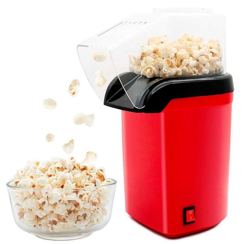 Pipoqueira Elétrica Portátil Prepara Pipoca Saudável RápidoPipoqueira Elétrica Portátil Prepara Pipoca Saudável Rápido 110vPipoqueira Elétrica Ar Quente Máquina Fazer Pipoca Sem ÓleoTenha pipoca quentinha na hora, crocantes e mais saudáveis e onde você desejar. Não usa óleo, não faz sujeira trazendo mais facilidade e comodidade para assistir seus programas preferidos com os familiares e amigos em casa a qualquer hora do dia. A Pipoqueira Elétrica utiliza ar quente para estourar os grãos de forma rápida e segura. Acompanha uma colher dosadora para colocar o milho dentro do aparelho, ao estourar, a pipoca sai pelo bico direcionador direto para sua tigela.Características:- Pipoca crocante e quentinha com muita facilidade no conforto da sua casa- Saudável e com design moderno- Não utiliza óleo nem gordura durante o preparo- Tampa dosadora, estoure a quantidade certa de pipoca, e, se preferir, derreta a manteiga na tampa enquanto a pipoca estouraEspecificações:- Modelo: Pipoqueira Elétrica Ar Quente Vermelha 1200W- Material: Plástico, Componentes Elétricos, Alumínio.- Cor: Vermelho- Tensão: 110v- Potencia: 1200W- Tempo de Uso: 2 a 3 minutos- Intervalo por uso: 15min (Recomendado)- Tamanho do Fio: 78cm- Dimensões Aprox.: 27cm (Altura) X 11,5cm (Largura) X 12cm (Comnto)- Peso Aprox.: 800gConteúdo da Embalagem:1 Pipoqueira Elétrica Ar Quente 1200W