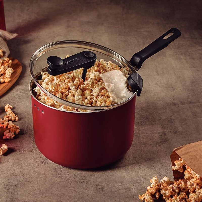 Pipoqueira Loreto Em Alumínio Antiaderente Starflon Vermelho 20 Cm 3,5 L - Tramontina 20387720 Pipoqueira Loreto em Alumínio Antiaderente Starflon Vermelho 20 cm 3,5 L - Tramontina 20387020 - Corpo de alumínio com espessura de 1,6 mm que proporciona cozimento rápido e uniforme.- Revestimento interno e externo de antiaderente Starflon Max que não gruda, é fácil de limpar, mais durável e não é prejudicial à saúde, pois é livre de PFOA.- Tampa de vidro temperado com trava que se encaixa ao cabo: mais estabilidade no manuseio. Não gira durante o preparo.- Trava antigiro.- Cabo de baquelite antitérmico, manípulo e trava de nylon que oferecem durante o manuseio.- Pode ir à máquina de lavar louças facilitando seu dia a dia. A pipoqueira Tramontina Loreto em alumínio com revestimento em antiaderente Starflon Max vermelho 20 centímetros de diâmetro 3,5 litros é a escolha ideal para preparar aquelas pipocas sequinhas e crocantes. Desenvolvida com corpo em alumínio com espessura de 1,6 milímetros, ela estoura a pipoca de maneira uniforme e rápida, evitando que grudem na superfície e exigindo menor ou nenhuma adição de óleo, pois conta com revestimento em antiaderente Starflon Max. A pipoqueira tem tampa de vidro temperado que não gira durante o preparo e se encaixa ao cabo, que assim como o manípulo, não aquece e proporciona um manuseio muito mais ! Garantia: 90 dias para vícios ou de fabricação. Mais informações:- Tipo: Pipoqueira- Material: Alumínio- Cor: Vermelho- Revestimento: Antiaderente Starflon Max- Fogão: Gás, Elétrico, Vitrocerâmico - resistência elétrica- Máquina de Lavar Louça: Sim Dimensões embalagem: 34 x 22 x 20,7 cmDimensões do produto: 35,4 x 21,2 x 20,4 cmPeso bruto: 1,27 kgPeso líquido: 0,96 kgCor: Vermelho