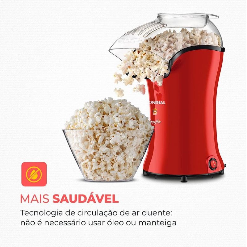 Suas séries, filmes e jogos ganham mais sabor com a Pipoqueira Mondial PopFlix PP-03. Fácil de usar e rápida no preparo, ela estoura os grãos de milho através de um sistema de ar quente, sem a necessidade de usar óleo. As pipocas ficam quentinhas, crocantes e mais saudáveis. Acompanha colher dosadora, com a medida certa para cada porção, não queima os grãos e não desperdiça. Em menos de 5 minutos você tem pipocas saborosas saindo do bocal direcionador direto para sua tigela preferida.Com a PopFlix PP-03 da Mondial você tem sucesso garantido, afinal, menos sujeira e cheiro de óleo pela casa e mais sabor para assistir seus programas preferidos com os familiares e amigos em casa a qualquer hora do dia.