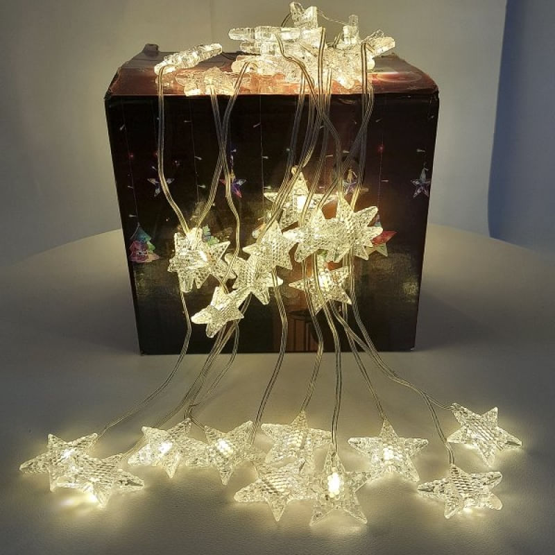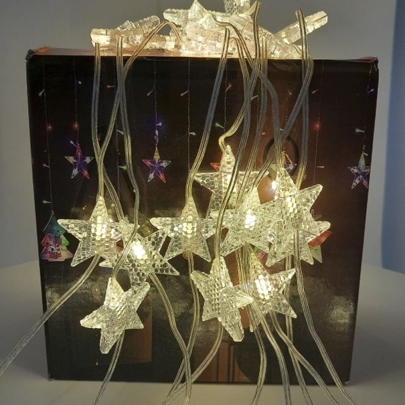 Pisca Cortina Estrelinhas Enfeite Natal 80 LED 3x1M 110-220v Amarelo - Pisca Pisca Lua Estrelas LED Cortina Decoração de Natal ! Cortina de Leds estrelas decorativa. Linda e ideal para: interior e exterior de ambiente e para decoração de eventos como natal, halloween, casamentos, festas e etc Especificações: 80 Lâmpadas Natalinas Com Estrelas; Voltagem: 110 - 220 Volts; Medidas: 3 Metros de Comprimento e 1 Metro de Altura; LEDs com 8 Funções; Pronto para uso: Basta Ligar na Tomada; Embalagem: 1 Pisca Cortina Natalina Com 80 Lâmpadas LEDs De 3x1 Metros; Características Gerais do Produto: • Material: Plástico ABS • Modelo: Pisca Cortina de Natal • Cor: Amarelo; Branco; Colorido • Dimensões aproximadas: Altura 1 Metro x Largura 3 Metros • Potência: 110 - 220v Garantia: • Garantia do site - 1 Mês
