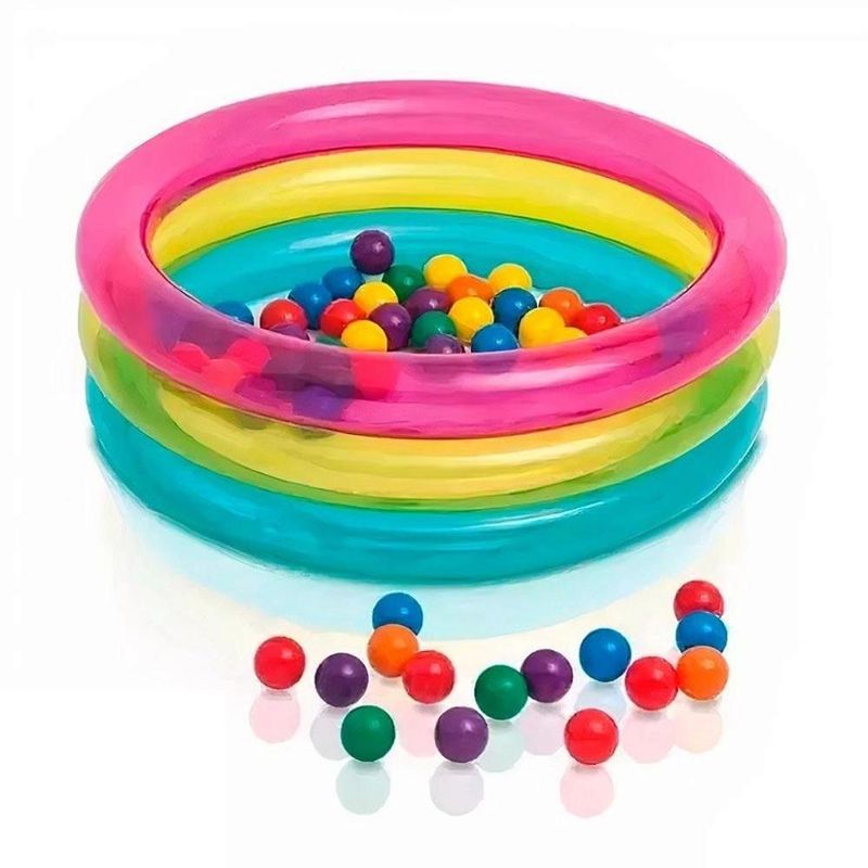 Piscina de Bolinhas Inflável Infantil Com 50 Bolinhas Intex Com a Piscina de Bolinhas Inflável Infantil Intex Com 50 Bolinhas, a diversão fica ainda melhor. Colorida e divertida, seu bebê vai adorar brincar nela. Tudo isso com a qualidade Intex, para você e a sua família curtir seus momentos de lazer do jeitinho vocês merecem. Informações Técnicas:- Material: PVC Pneumático- Marca: Intex- Composição/Material: PVC Pneumática- Idade recomendada: 1 - 3 Anos- Conteúdo da Embalagem: 1 Piscina- Dimensões aproximadas do produto: 86cm x 25cm- Acompanha 50 bolinhas coloridas- Registro no Inmetro: CE-BRI/OCP0019 - No 032/14 BR-095Sobre a IntexA Intex é especialmente conhecida por fabricar produtos como piscinas e colchões infláveis, bombas filtrantes, capas protetoras, filtros de limpeza e diversos itens recreativos desenvolvidos para aumentar a diversão na água. São produtos dedicados ao lazer em família e à manutenção das piscinas infláveis, seguindo padrões que garantem qualidade, resistência e segurança. Dados Técnicos Material: pvc Pneumático Alta resistência Inclui 50 bolinhas 86cm de diâmetro x 25cm de altura Referência:75946 Marca: intex
