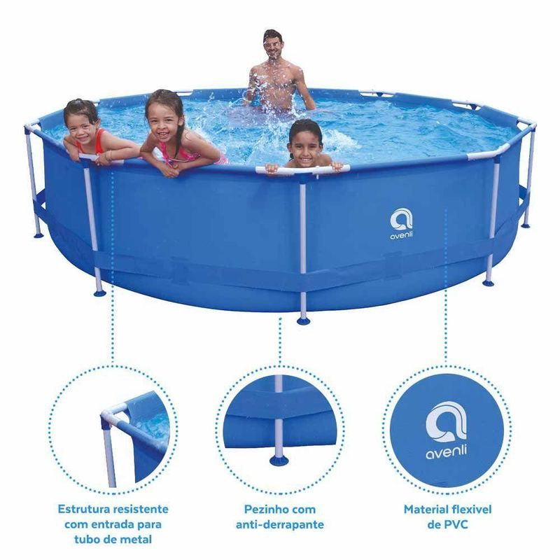 Piscina Estrutural Armação 6125 Litros Bomba Filtro E Capa Avenli Jilong 110vNada melhor do que poder se refrescar nos dias quentes de altas temperaturas não é mesmo?! Com essa incrível Piscina Avenli da Jilong você poderá fazer isso no conforto de sua casa!Dias ensolarados pedem muita diversão na água com os amigos e familiares, mas se você mora longe da praia nem sempre isso é possível. Por isso, ter em casa uma piscina estruturada como essa da Jilong é a melhor escolha, pois com ela, você poderá garantir lazer e entretenimento de forma fácil e prática!A montagem é super simples, graças as bordas estruturadas que também aumentam sua durabilidade. Além disso, ela conta com capacidade de 6.125 litros, sendo perfeita para toda sua família e amigos.Características:- Marca: Jilong.- Capacidade: 6.125L (90% de sua capacidade máxima).- Material: Piscina em lona PVC de alta resistência e durabilidade.- Dimensões: 360 CM de diâmetro e 76 CM de altura.- Peso aproximado: 21 Quilos.- Cor: Azul.- Acompanha bomba filtrante 1.250L/H 110v e capa estrutural- Piscina com válvula de escoamento.- Acompanha Adesivo e reparo e manual de instruções.Piscina Estrutural Armação 6125 Litros Bomba Filtro e Capa Avenli Jilong 110v