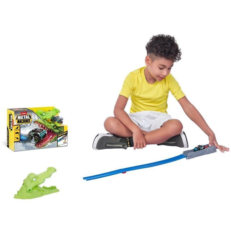 Pista Metal Machines Croc AttackA Pista de Corrida Metal Machines Croc Attack traz uma aventura cheia de velocidade, ação e desafios radicais. Prepare-se para lançar seu carrinho com toda a potência e atravessar a pista em alta velocidade para escapar da mordida do crocodilo que está à espreita no final do percurso. Mas atenção: se não conseguir força suficiente, o veículo pode ser capturado pelo temido predador! Com aproximadamente 61 cm de pista, rampa para acrobacias e um lançador potente, este playset garante corridas emocionantes e muita diversão. O conjunto já inclui um carrinho Metal Machines Bone Crusher, pronto para acelerar e encarar esse desafio cheio de adrenalina. Com design radical e muita ação, a Pista Metal Machines Croc Attack é perfeita para crianças que adoram carrinhos, pistas de corrida e aventuras cheias de emoção. Ideal para criar disputas, testar velocidade e viver momentos eletrizantes a cada lançamento. INMETRO: IP-BRI-2780/2021-04 Idade Recomendada: 4 YEARS Marca: Pista Metal Modelo: Croc Attack SELO INMETRO_BB: IP-BRI-2780/2021-04 IDADE RECOMENDADA_BB: 3 a 11 anos Característica do produto: Brinquedo