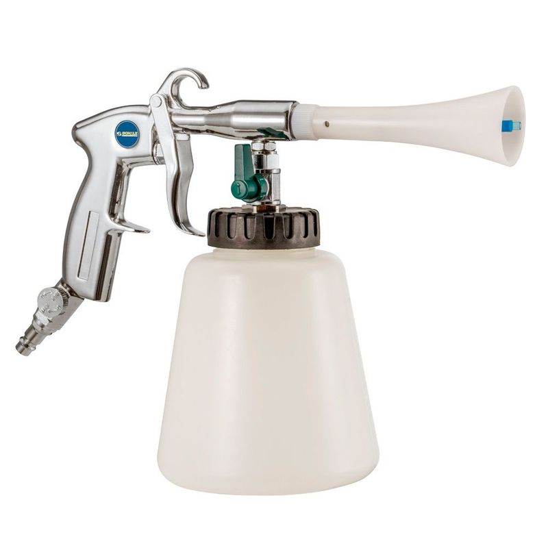 Requer uma vazão efetiva de no mínimo 8 pcm a uma pressão entre 87 e 133 psi, sendo o ideal 120 psi. Capacidade de armazenamento do líquido de limpeza 1 litro. Este é um produto muito utilizado em empresa prestadoras de serviço de limpeza automotiva (lava rápido). O produto permite que a limpeza do interior seja parcialmente a seco, da tapeçaria, bancos, forros e teto,reduzindo significativamente o tempo de secagem quando comparado a utilização de aspiradores/extratores.SKU: 10670113