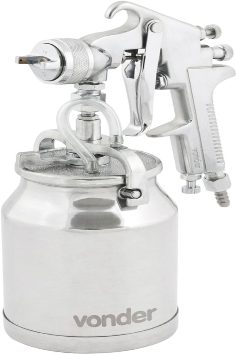 Conteúdo da embalagem1 Pistola para pintura Aplicações e dicas de usoNa configuração original de fábrica, acompanha bico e agulha de 1,8 mm, sendo indicada principalmente para o ramo de preparação automotiva em aplicações de bases, primer, fundos, pinturas epóxi, PU e seladores. No ramo moveleiro em aplicações de seladores, vernizes, pesticidas e fundos, e em ambientes prediais, nas pinturas com tinta óleo, verniz para madeira, esmaltes sintéticos e seladores. Também é indicada para o ramo serralheiro em aplicações de zarcão, esmaltes sintéticos, tintas automotivas, fundos diversos, tinta óleo e tinta martelada. Pode ainda ser utilizada, com restrições, em acabamentos automotivos, nas aplicações de vernizes, tintas metálicas, tinta PU, tintas comerciais e esmaltes. O modelo permite a troca de agulha e bico pela medida de 1,4 mm (vendidos separadamente), aumentando a gama de trabalhos para acabamentos automotivos nas aplicações de vernizes, tintas metálicas, tintas PU, tintas comerciais e esmaltes e no ramo moveleiro, em aplicações de seladores, vernizes, pesticidas e fundos.Destaques e diferenciaisPossui bico e agulha em aço inox e capa de ar em latão, proporcionando maior durabilidade DETALHES TÉCNICOS Consumo de ar da pistola: 4,6 a 7,1 PCM (pé³/min) Pressão de trabalho da pistola: 42 lbf/pol² a 60 lbf/pol² Vazão de tinta: 140 ml/min a 180 ml/min Tipo da caneca para pistola de pintura: Tipo sucção Diâmetro do bico da pistola: 1,8 mm Material do corpo da pistola: Alumínio Material da caneca para pistola de pintura: Alumínio Material do bico da pistola: Inox Material da agulha da pistola: Inox Material da capa de ar da pistola: Latão Capacidade da caneca para pistola de pintura: 1 Litro Rosca de entrada de ar da pistola: 1/4" NPT (macho) Prazo de garantia: 6 meses