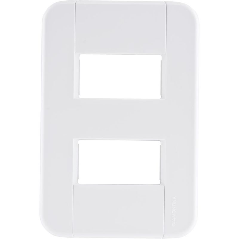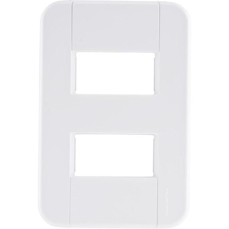 Placa 2 Postos Afastados 4x2 Tramontina Tablet Branca A Placa 2 Postos Afastados 4x2 Tramontina Tablet Branca é a escolha ideal para levar o acabamento perfeito para seus projetos e deixar seus ambientes muito mais agradáveis. Produzida em termoplástico, ela possui sistema modular com suporte acoplado à placa e furo oblongo, ambas características que facilitam sua instalação e sua regulagem com a parede, sem que a fixação fique aparente. Ela ainda é muito versátil, pois pode ser utilizada em paredes de madeira e com módulos nas cores branco ou grafite. Além de tudo isso, vem acompanhada de parafusos para a instalação, o que a torna um item muito prático e indispensável para seus projetos elétricos!