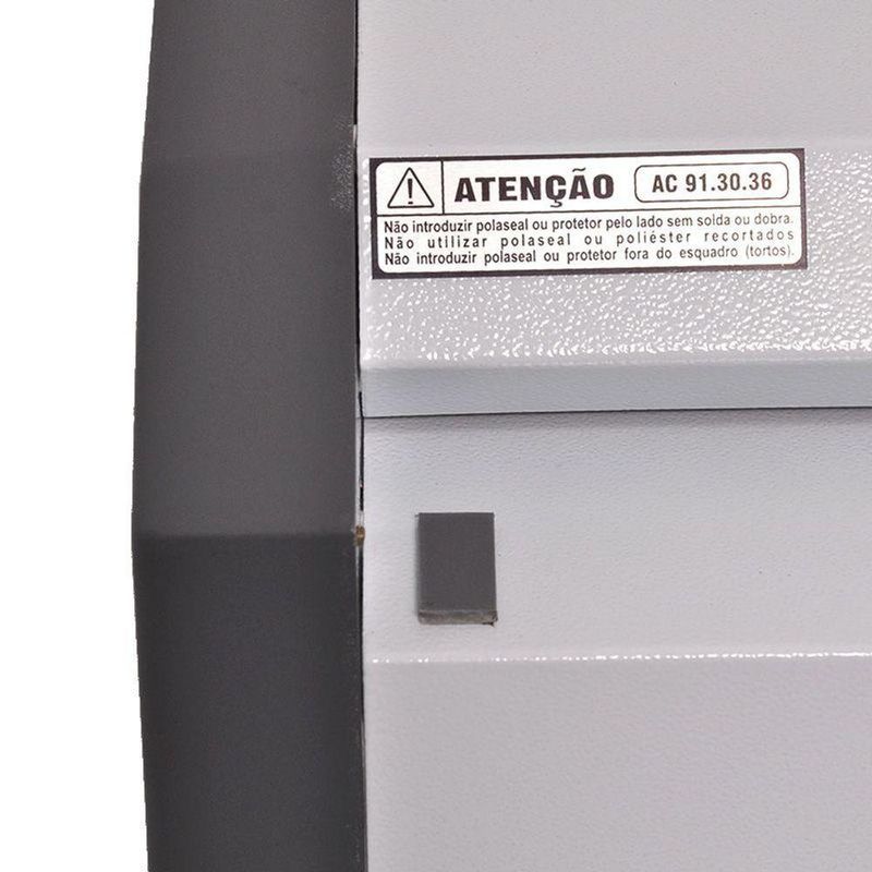 Plastificadora Gazela A3 Cilind Silicone C/ Reverso 91.30.36Plastificadora Gazela A3 Cilind Silicone com Reverso 91.30.36Plastificadora de uso prático e fácil, as laminadoras gazela AC91 econômica tem o melhor desempenho entre as laminadoras de baixo custo. São fáceis de operar ocupam pouco espaço, não requerem instalações especiais e laminam polaseal com qualidade nas espessuras convencionais do mercado até o tamanho super A3, a plastificadora laminadora econômica gazela AC 91.30.36 é ideal para serviços de plastificação diversificados e intensos.Plastificação com polaseal de 005 a 010 (125 a 250 micra) em papéis até 420 g/m² ou 0,50mm de espessura máxima. Para serviços de plastificação diversificados e intensos até o tamanho A3.Garantia de 1 ano (com assistência técnica em todo território Brasileiro)Plastificadora de baixo custo para polaseal até o tamanho A3Quatro cilindros de siliconePlastifica com ou sem protetor1 ano de garantiaMáquina bivoltEspecificações Técnicas:Perfis de alumínio extrudado bicomposto aquecidosTermostato bimetálico de baixo variação térmicaVelocidade: 600 mm/min com reversão/bivoltProtetor siliconado de uso opcional até 240 g/m² (0,25mm)Largura máxima de plastificação: 350mm (12*)Itens Inclusos:01 Plastificadora Gazela A3 Cilind Silicone com Reverso 91.30.36Produto plataforma Plast.