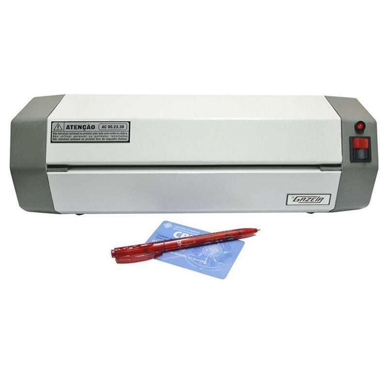 Plastificadora Gazela Compacta Tamanho até Ofício ACCompacta, leve e de design moderno, as Laminadoras Compactas Gazela AC00 são apresentadas em visual bonito e desempenha com perfeição plastificação em polaseal nas medidas convencionais do mercado. São silenciosas e tem sistema de ligação independente do motor e das resistências.A Laminadora Compacta Gazela AC 00.23.30 é indicada para copistas, escritórios e uso pessoal, plastificação com polaseal de 005 a 010 (125 a 250 micra) em papéis até 250 g/m² ou 0,30 mm de espessura máxima. Possui um inovador termostato bimetálico de baixa variação térmica, o que otimiza a qualidade da plastificação.Plastifica polaseal e papel sintético até o tamanho OfícioPlastifica com perfeição e agilidade.Informações gerais:- Protetor siliconado de uso opcional: 240 g/m² (0,25mm)- Termostato bimetálico de baixa variação térmica- Largura máxima de plastificação: 230mm (9 *)- Perfis de alumínio extrudado aquecidos- Plastifica com ou sem protetor- Velocidade de 500 mm/minuto- Quatro cilindros de silicone- Máquina Bivolt- 1 Plastificadora Gazela Compacta Tamanho Até Ofício 00.23.30- Marca: GAZELA - Referência: AC002330gz- Garantia: 3 meses