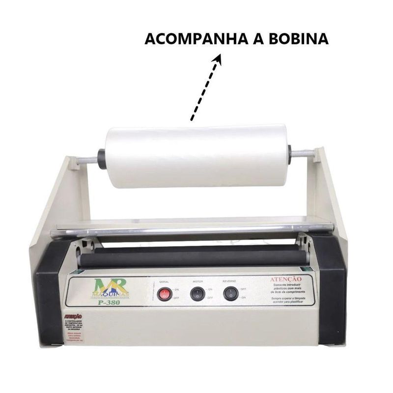 Plastificadora P380 Com Suporte Bobina Fosco Bopp 35cm 110vPlastificadora P380 Com Suporte Bobina Fosco Bopp 35cm 110VChegou a solução perfeita para proteger e dar um toque profissional aos seus documentos, crachás e muito mais. Com a P380 você poderá plastificar velocidade qualquer tamanho do crachá ao A3, dotada de 4 cilindros de preensão reguláveis, protege contra rasgos e respingos de líquidos. Acompanha um suporte para bobina de BOPP e uma bobina BOPP com Brilho. As bobinas para laminação a quente em grandes formatos, garantem maior durabilidade e resistência à abrasão. Oferecem ótima proteção à umidade, maior espessura e corpo a sua mídia impressa O processo é rápido e eficiente, economizando seu tempo e permitindo que você produza mais em menos tempo.Medidas Plastificadoras:Comprimento: 46,5cm.Altura: 30,5cm.Largura: 24cm.Peso: 7,00Kg.Medidas da Bobina Bopp:Comprimento: 350m.Espessura 30 micras.Largura: 35cm.Peso: 2,00kg.Especificações da Plastificadora:Potência: Em aquecimento: 360w / Aquecida: 60w.Termostato auto ajustável de alta pressão.Voltagem: 110V.Possui reversão.Modelo: P380.Especificações Bobina Bopp:Filme ultra fino para laminação de imagens que necessitam da característica anti-refletiva.Ideal para imagens expostas em locais com intensidade de luz.Filme com apresentação mateada, sem brilho. anti-reflexo.Itens Inclusos:01 Plastificadora Poliseladora P380 110V.01 Bobina de BOPP Brilho A3 35cm.01 Suporte para Bobina de BOPP.Código: P380eSUPBOPPF110MR