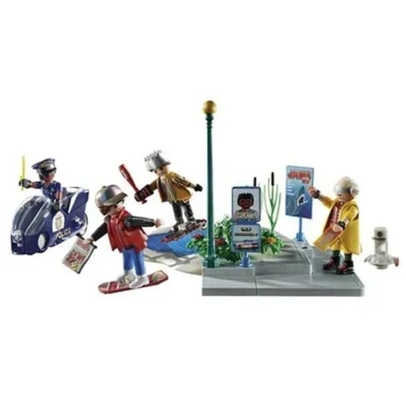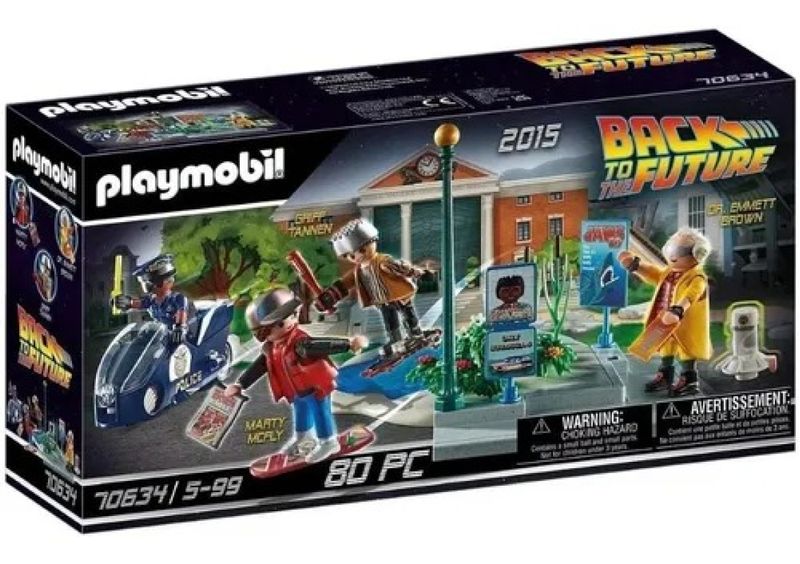 Playmobil - De Volta Pro Futuro - Fuga De Skate – 80 peças depois de Sua Primeira Viagem Ao Passado, Marty Mcfly Agora Segue Para 2015. No Futuro, Griff, o Neto do Arquirrival de Marty, Biff Tannen, Está em Seus Calcanhares, Desta Vez em Pranchas Voadoras em Vez de Skates. Será Que Marty Conseguirá Ultrapassar Griff, Salvar Sua Família e Voltar a 1985? com o Mais Recente Cenário de Volta Para o Futuro da Playmobil, Os Fãs da Trilogia de Filmes Clássicos de Culto Podem Reconstituir a Lendária Cena de Perseguição de Pranchas Flutuantes Anexando As Figuras Pelos Apoios Para Os Pés Idade acima de 5 anos Contem 80 peças Tamanho da embalagem 35 x 19 x 9 cm Fabricante Sunny