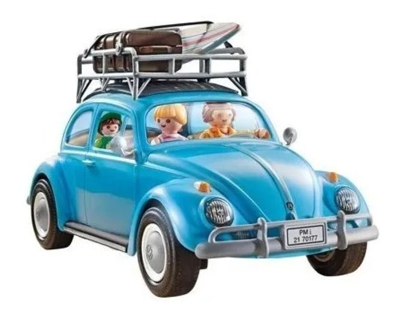 Playmobil Volkswagen Beetle Fusca Azul - 52 Peças O clássico VW Beetle! Inclui um rack de teto - ideal para uma viagem em família à praia. O VW Beetle é um verdadeiro clássico. Agora, o carro de culto com a sua forma inconfundível está a entrar no alegre mundo da PLAYMOBIL. Claro, o PLAYMOBIL Beetle tem todas as características que o tornam tão único, como os para-lamas curvos, o logotipo da VW, o para-brisa vertical, a pintura azul e o típico capô traseiro com motor boxer de 4 cilindros. Depois de remover o teto, o interior amorosamente projetado com bancos, painel e volante bege é revelado. No banco traseiro há espaço para a criança, além de bolsa térmica, brinquedos de areia e toalha. A mala e a prancha de surfe podem ser presas ao rack de teto. Agora é hora de entrar e ir para a praia! O playset contém três bonecos PLAYMOBIL, um Fusca Volkswagen da PLAYMOBIL com bagageiro, teto removível e porta traseira que pode ser aberta, prancha de surf, caixa térmica Contem: 52 peças Idade acima de 5 anos Tamanho da embalagem 35 x 19x 9 cm Fabricante Sunny