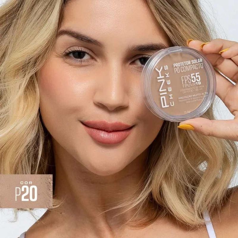 Pó Compacto Protetor Solar FPS 55 Pink Cheeks P20 Você saiu de casa com a pele pronta, mas bastaram alguns minutos para o brilho excessivo começar a aparecer. Na hora de reaplicar o protetor solar, surge a dúvida: Como fazer isso sem, antes, remover toda a maquiagem? A gente entende esse desafio e entrega a resposta. O PÓ COMPACTO da PINK CHEEKS é o nosso primeiro protetor solar com cor 100% mineral, altamente resistente à água e ao suor por até 12 horas, que controla a oleosidade e blinda a pele contra os efeitos nocivos do sol com FPS 55 e FPUVA 19. Graças ao Zinco, também bloqueia a luz azul, que chega à pele através das telas. Tudo isso sem comprometer o que já foi aplicado: reforce a proteção e a cobertura sempre que precisar, sem interrupções. A composição é livre de talco e segura. Pensado para superar as expectativas de um pó compacto, sela a maquiagem com efeito matte adicionando mais uma camada de cobertura e cobre imperfeições, como poros dilatados e linhas de expressão, com efeito soft focus. Benefícios: - FPS 55 e FPUVA 19 - Absorve a oleosidade e reduz o brilho - Uniformiza o tom e suaviza a textura - Cobertura alta, acabamento aveludado e toque seco - Potencializado com Niacinamida - Resistente à água e ao suor por até 12 horas Modo de usar: Aplique o pó compacto com uma esponja ou pincel da sua escolha. Comece depositando o produto na área desejada e, após alguns segundos, espalhe suavemente em direção às extremidades do rosto para remover o excesso. Dica: Pode ser utilizado sozinho ou após a maquiagem para garantir um resultado sequinho e sem transferências.