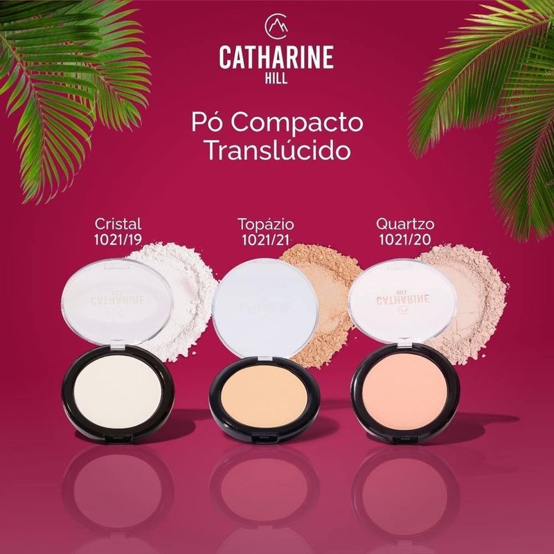Pó Translúcido Catharine Hill Cristal 9g Pó translúcido compacto matte. Catharine Hill proporciona selamento da maquiagem, com maravilhoso toque aveludado. O Pó Translúcido Catharine Hill oferece um efeito leve e natural, com excelente aderência e sensorial sedoso. Não adiciona cor à pele, sendo ideal para manter a matificação e uniformização da make, além de deixá-la intacta por muito mais tempo. Benefícios: Perfeita aderência Suavidade Efeito leve e natural Acabamento aveludado Pigmentação leve 3 tons Durabilidade Matificação Modo de usar: Aplique com um pincel ou esponja sobre a face até obter o efeito desejado. Para um acabamento ainda melhor, invista sempre em uma boa skincare diária.