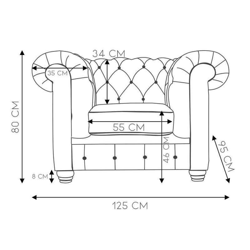 Poltrona Sala de Estar Chesterfield com Pés Madeira Couro Conhaque Gran BeloUm inovador que veio para atrair olhares com seu design super estiloso e atraente, além disso, é desenvolvido com espumas e couro que garante conforto e durabilidade. É um produto que foi fabricado pensando especialmente em você consumidor que exige qualidade e bom gosto!Especificações técnicas:- Marca: Gran Belo- Estrutura: Madeira Maciça de Eucalipto- Assento: Removível, Suspensão de Percintas Elásticas e Espuma D-33 Soft com Manta de Silicone- Encosto: Fixo, Espuma D-26 Soft- Braços: Espuma D-26 Soft- Material dos Pés: Madeira Tingida- Detalhes: Tachas Envelhecidas- Quantidade de Pés: 04- Revestimento: Couro- Cor: Conhaque Pigmentado- Peso Suportado: 100Kg- Peso do Produto: 50Kg- Conteúdo da Embalagem: 1 Poltrona- Necessita de Montagem: Não- Largura: 125cm- Altura: 80cm- Profundidade: 95cm- Largura de cada Braço: 35cm- Altura do Encosto: 34cm- Altura dos Pés: 8cm- Profundidade do Assento: 53cm- Largura do Assento: 55cm- Altura do Assento até o Chão: 46cm- Garantia: 3 Meses