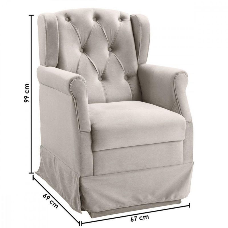 Poltrona De Amamentação Ternura Balanço Tecido Veludo Marfim Star ConfortDesfrute de momentos especiais com a Poltrona de Amamentação Star Confort Ternura, desenvolvida para oferecer conforto durante a amamentação e o descanso. Seu estofado em veludo macio proporciona toque suave e acolhedor, ideal para longos períodos sentada com o bebê. O movimento de balanço suave ajuda a relaxar mãe e filho, criando uma atmosfera tranquila no quarto do bebê ou em espaços de cuidado. A estrutura em madeira e metal de alta resistência contribui para maior e durabilidade no uso diário. Com design funcional e elegante na cor marfim, integra-se facilmente a diferentes estilos de decoração.Vantagens e diferenciais Estofado em veludo: toque macio e acolhedor para maior conforto. Função balanço: movimento suave que ajuda a relaxar mãe e bebê. Estrutura em madeira e metal: maior resistência e durabilidade no uso diário. Design em cor marfim: visual elegante que combina com diversos ambientes. Dimensões equilibradas: 105x73x75 cm que se adaptam bem ao quarto do bebê.Especificações Técnicas Marca: Star Confort Modelo: Ternura Tipo de produto: Poltrona de amamentação com balanço Função principal: Descanso e amamentação Material do estofado: Veludo Estrutura: Madeira e metal de alta resistência Cor: Marfim Altura do produto: 105 cm Largura do produto: 73 cm Profundidade do produto: 75 cm Peso do produto: 25 kg Categoria: Poltrona Ambiente indicado: Quarto do bebê e espaços de descanso Garantia do fabricante: 3 mesesObservações importantes A montagem ou instalação é de responsabilidade do comprador. Verifique se o de possui espaço e acesso adequados conforme as dimensões do produto. A é realizada no térreo, não incluindo subida de escadas ou içamento. O produto não acompanha itens decorativos ou acessórios utilizados nas imagens.
